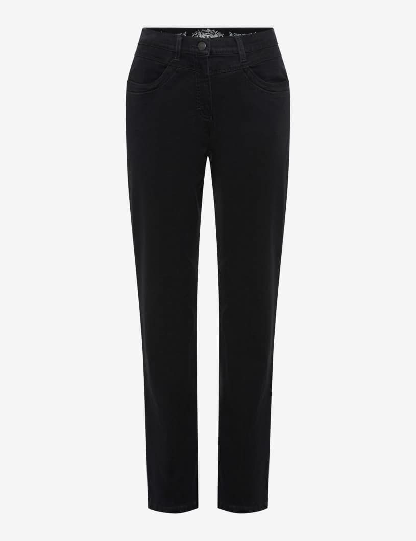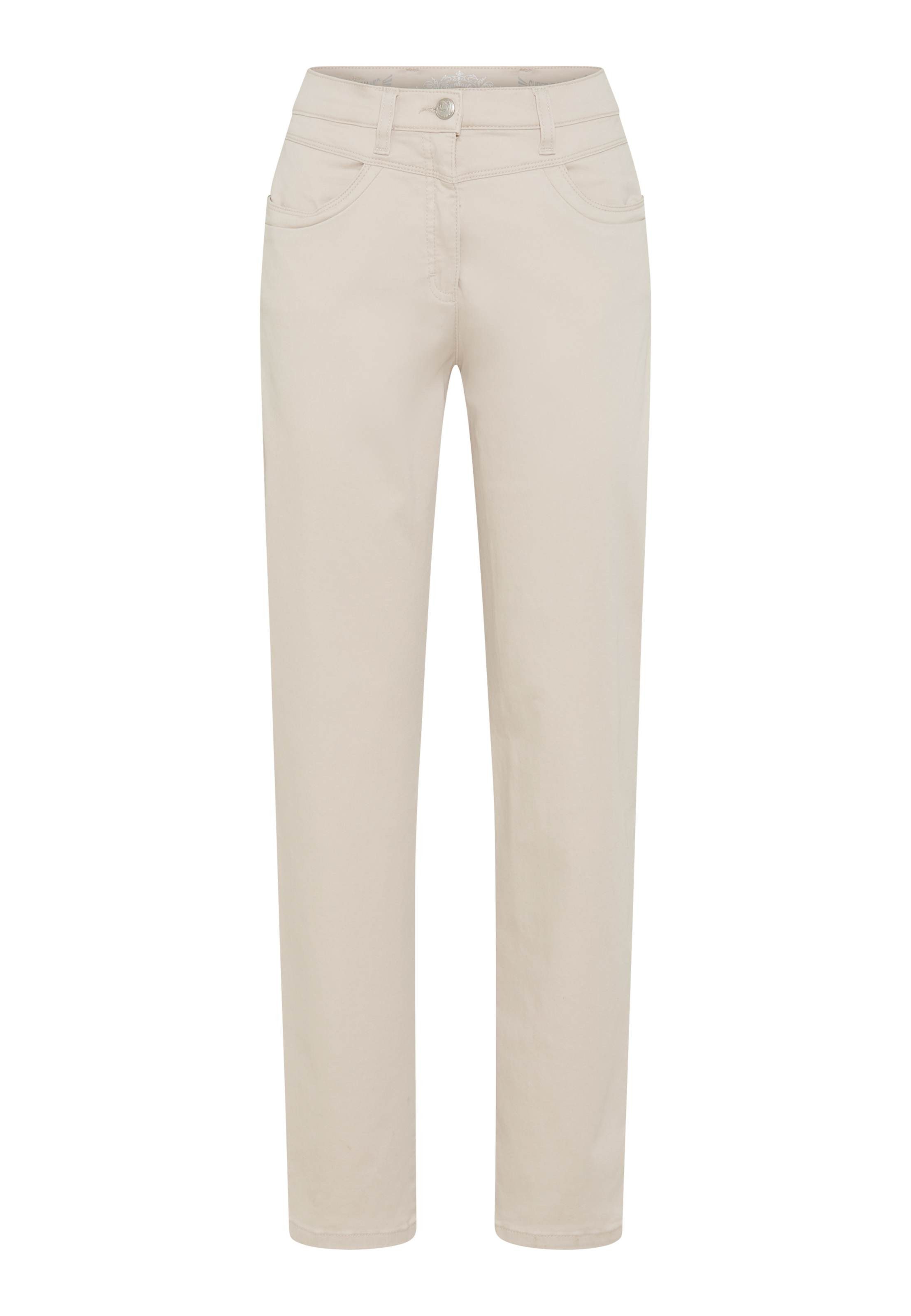 Die Damenhose im Style CAREN NEW verbindet modernen Komfort mit figurbetonter Raffinesse – ein echtes Must-have für stilbewusste Frauen, die Wert auf Passform und Qualität legen. Der Look ist geprägt vom klassischen Five-Pocket-Design und einer konisch zulaufenden Silhouette, die das Bein optisch streckt und für eine harmonische Linienführung sorgt. Die raffinierte Schnittführung und clever platzierte Nähte sorgen für die feminin definierte Silhouette und erzeugen den Invisible-Bodyshaping Effekt, der Ihren Po optisch anhebt. Aufgesetzte Gesäßtaschen und Einschubtaschen vorn runden das zeitlose Design ab, während der verdeckte Reißverschluss für eine cleane Optik sorgt. Gefertigt aus einer hochwertigen Materialmischung aus Baumwolle, Lyocell, Elastomultiester und Elasthan vereint die Hose weichen Tragekomfort mit hoher Elastizität und Formbeständigkeit. Der feine Satin-Touch des Gewebes sorgt für eine sanft schimmernde Oberfläche und ein geschmeidiges Gefühl auf der Haut – perfekt für stilvolle Alltags-Looks mit besonderem Anspruch an Tragekomfort und Passform.