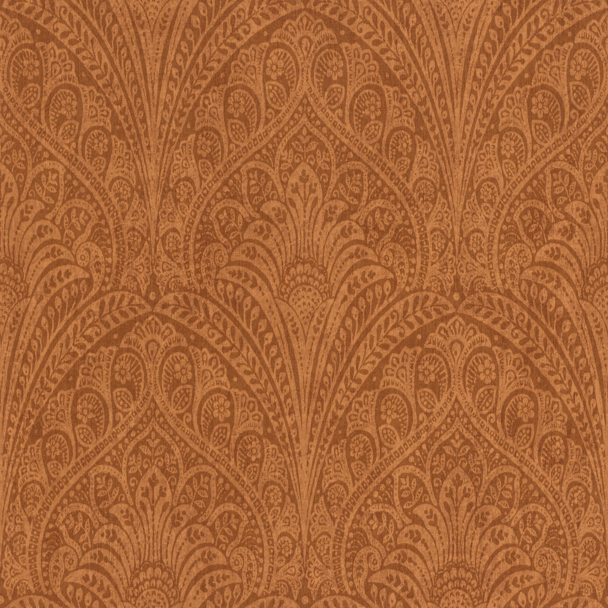 Wenn es ein bisschen mehr sein darf, sollte man den Ornament-Trend unbedingt ins Auge fassen. Dieses raffinierte Muster eignet sich ideal, um einzelne Wände in Szene zu setzen oder kleinen Räumen zu orientalischem Flair zu verhelfen. Hier in einer Kombination aus Orange und Braun, die durch die feine Tapetenstruktur besonders stimmungsvoll zur Geltung kommt und je nach Lichteinfall auch einen feinen Glanz zeigt.
