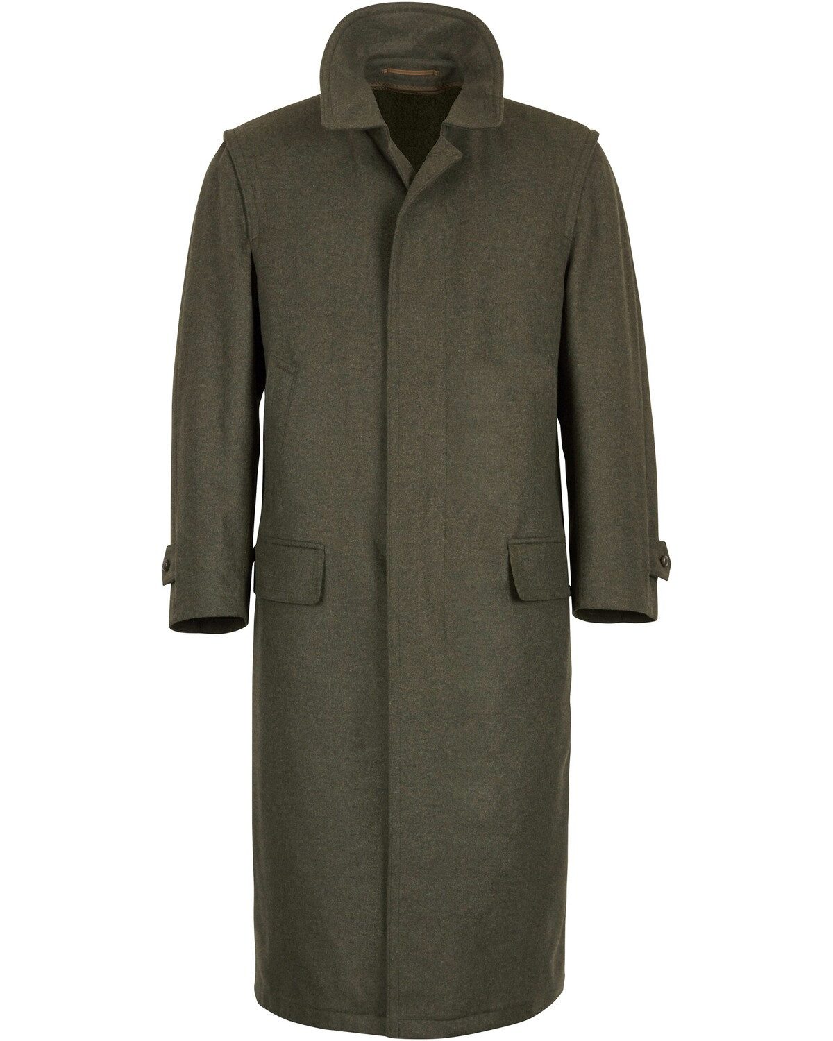 Der klassische Hubertusmantel besitzt alle traditionellen Attribute eines Jagdmantels, wie bespielsweise die im Achselbereich offenen Schießärmel für reichlich Bewegungsfreiheit beim In-Anschlag-gehen oder die seitlichen Durchgriffe, um möglichst einfach an die Taschen der darunter getragenen Jagdbekleidung zu gelangen. Der wetterfeste Loden garantiert eine hohe Regen- und Schneebeständigkeit und hält bei der Jagd angenehm warm. Für Bewegungsfreiheit auf dem Weg zum Ansitz, bei der Pirsch oder Treibjagd, sorgt die eingearbeitete Kellerfalte, die vom hinteren Saum bis hoch zwischen die Schultern reicht. Das Borgfutter (Pelzimitat) ist heraustrennbar, damit ist der Mantel für alle Jahreszeiten geeignet. Mit 2 Schubtaschen mit warmem Futter aus aufgerauter Baumwolle, 2 Pattentaschen, 2 Innentaschen, davon eine mit Reißverschluss. Frontverschluss durch verdeckte Knopfleiste. Oberstoff: 75% Schurwolle, 25% Polyamid; Futter: 100% Polyester. Dieser Artikel enthält nichttextile Teile tierischen Ursprungs.