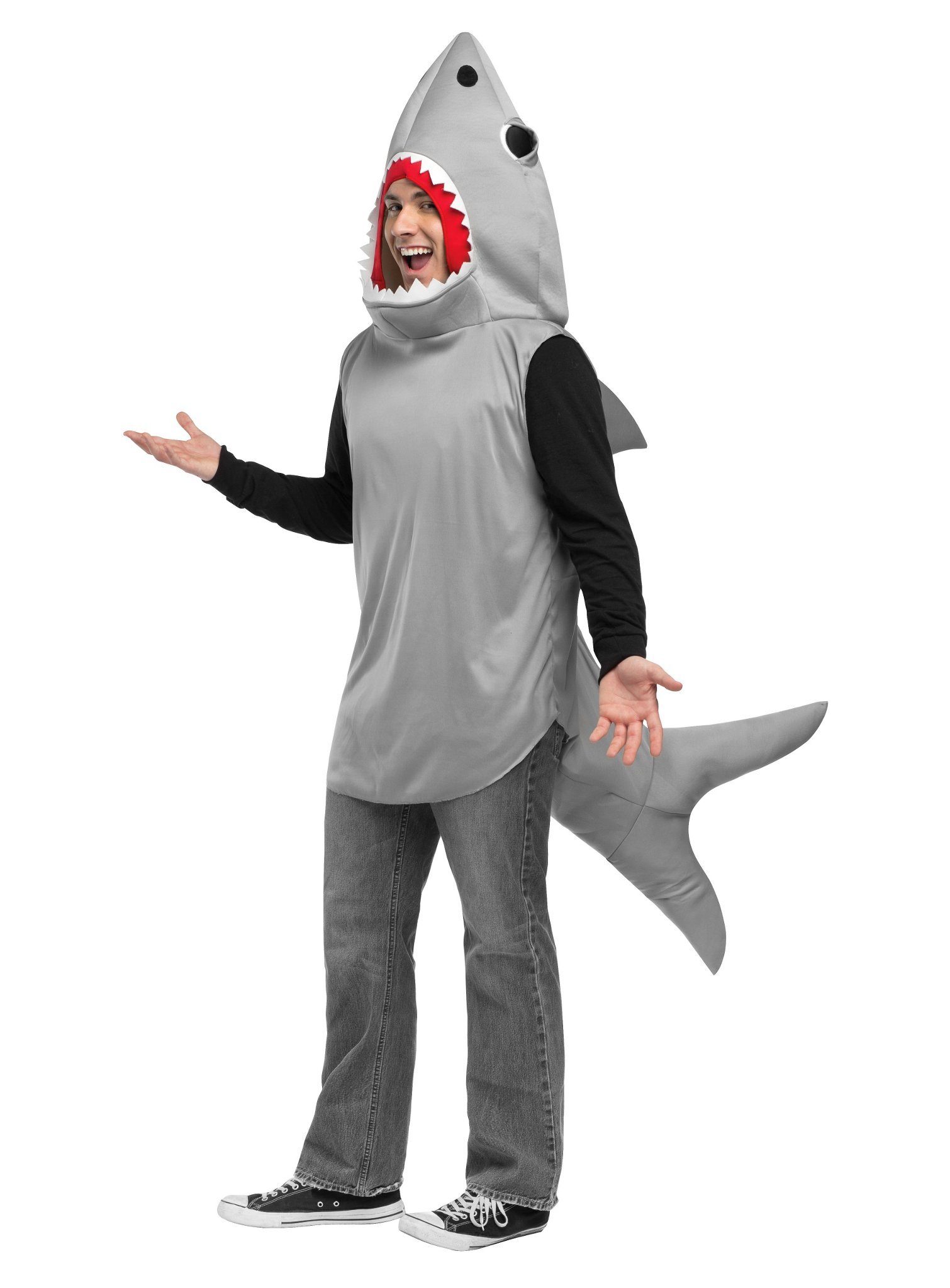 Mit diesem Fun-Kostüm sorgt Ihr nicht nur am Strand für Aufsehen! Einfach drüberziehen und fertig ist der witzige Hai-Look!
