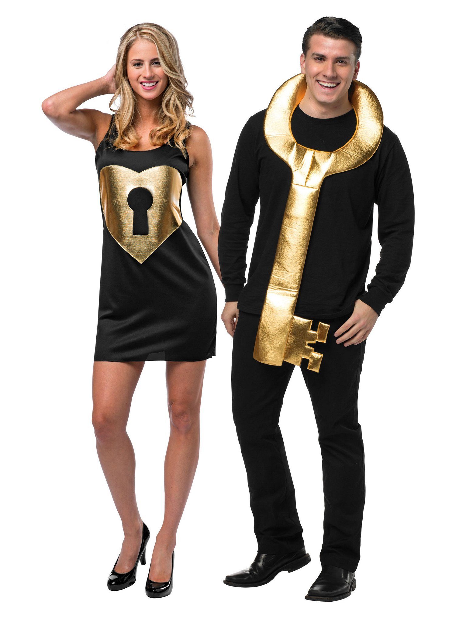 Da haben sich zwei gefunden! Originelles Paarkostüm mit Schloss-Kleid und Schlüssel zum Umhängen!