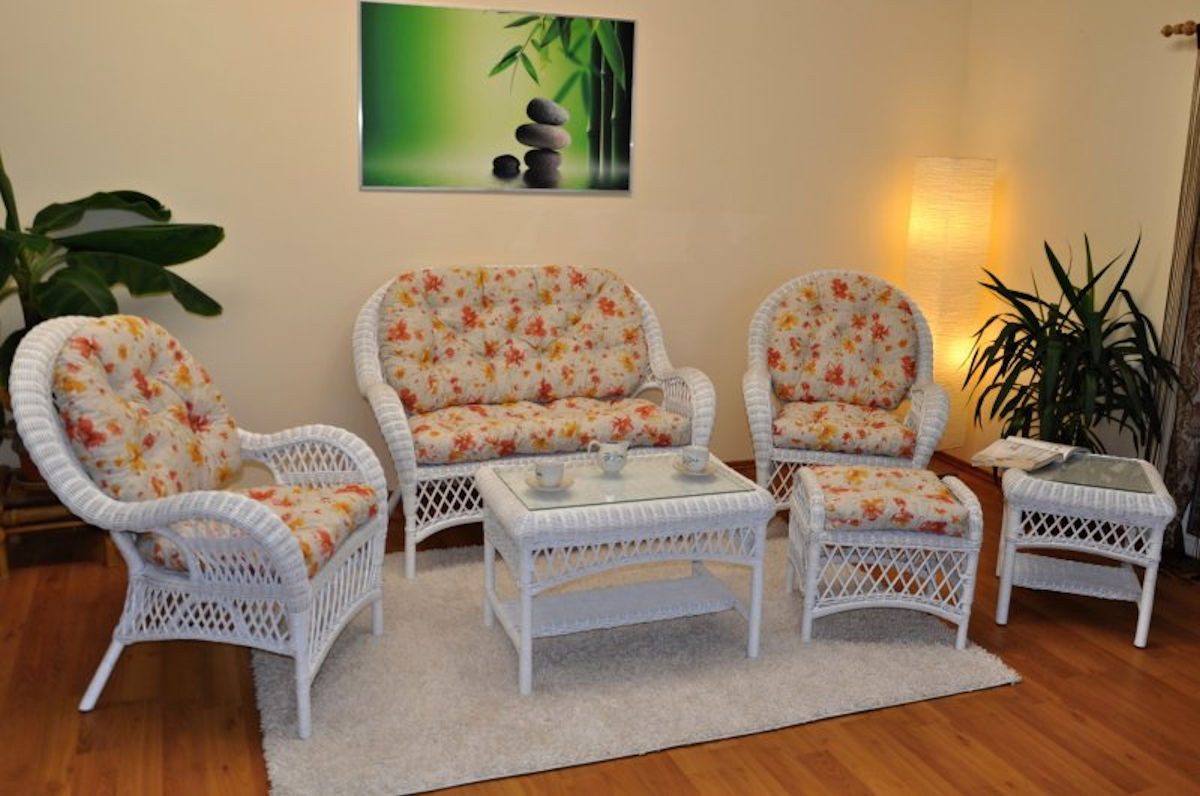 Große Rattangruppe , Rattangarnitur Florida . Komplettes Set bestehend aus 2 Rattansessel , Fußhocker , Rattan Zweisitzer , Rattantisch und Rattan Beistelltisch inkl. Glasplatten. Die hochwertigen Polster für Sessel , Zweisitzer und Hocker sind inklusive . Die Rattangruppe Florida ist ein sehr guter Qualität verarbeitet . Die Lieferung erfolgt komplett wie abgebildet . Größen: Sessel 76x80x97 cm , Zweisitzer 128x80x97 cm , Hocker 52x40x48 cm , Tisch 80x50x50 cm , Beistelltisch 52x52x50 cm .