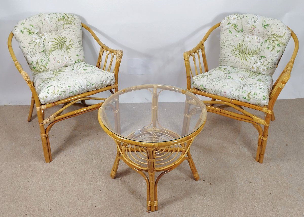 Set 2 Rattansessel und Rattantisch Inkl. Polster