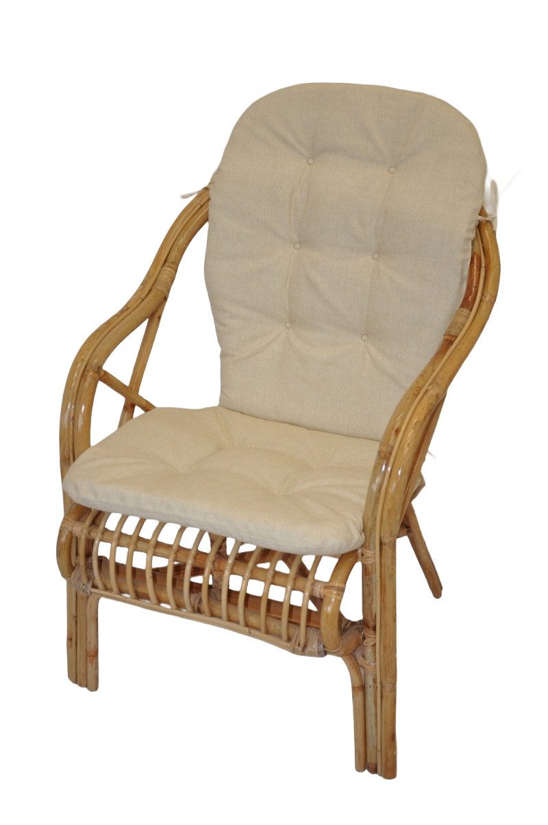 Rattansessel , Rattanstuhl , Relexsessel Mandurah inkl. Polster . Die Korbfarbe des Sessels ist Rattan Natur berindet . Auch für den überdachten Aussenbereich geeignet . Die Verarbeitung des Rattansesssel ist solide und stabil . Das Polster ist beige und besteht aus 80 % Baumwolle 20 % Polyester . Die Размер : B 64 cm , T 73 cm , H 90 cm . Die Sitzhöhe beträgt angenehme 45 cm .