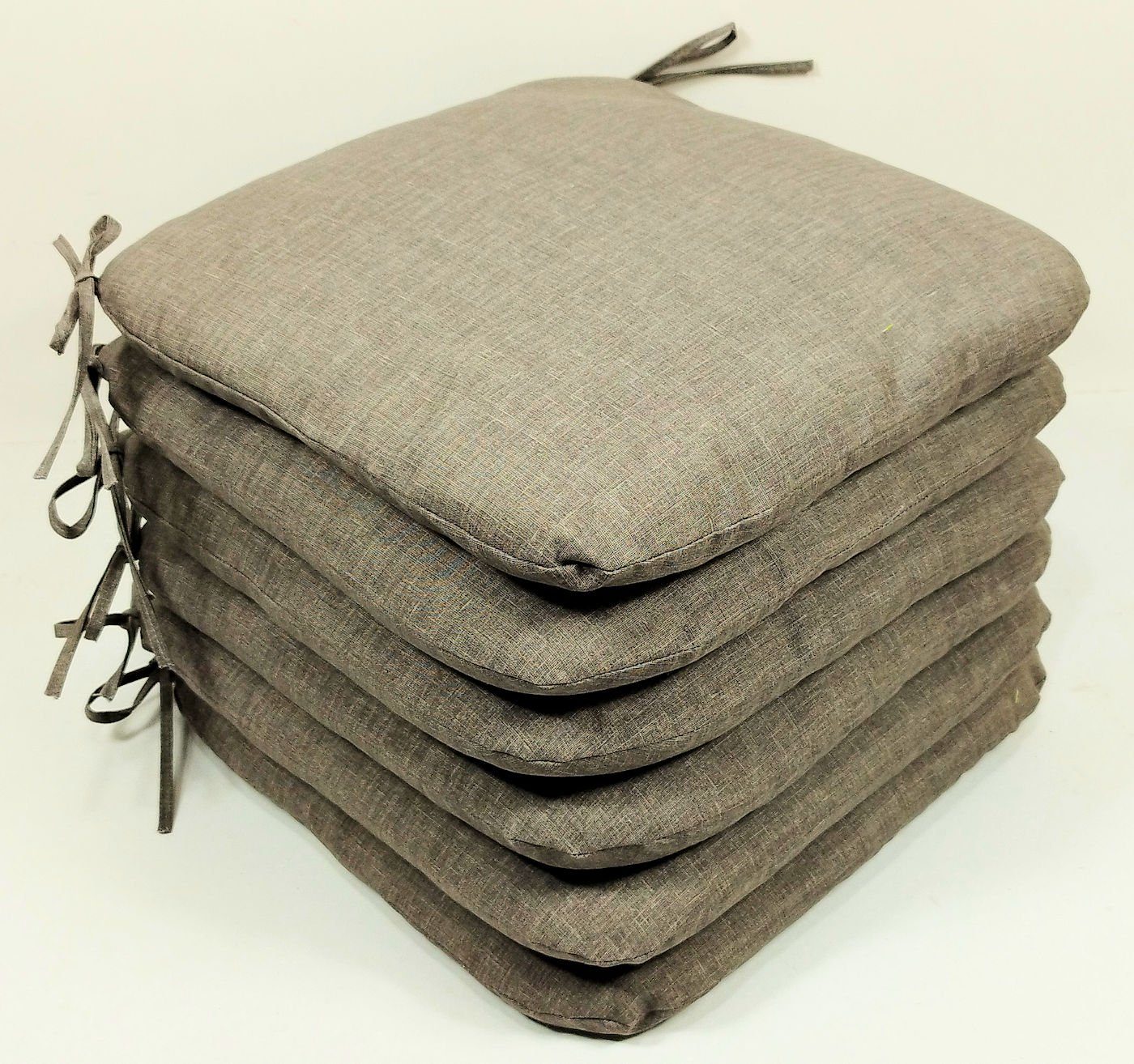 Stuhlkissen / Sitzkissen Billy im Set . Vielseitiges Sitzkissen im Maß von 40 x 40 cm . Stofffarbe Uni Living dunkel grau . 80 % Baumwolle / 20 % Polyester . Füllung 6 cm formstabiler Polyestervlies . Rückseite mit Bindeschleifen . Wir bieten Ihnen diese Kissen in vielen Unifarbenen und gemusterten Stoffen an . Diese können Sie auch miteinander kombinieren . Top Qualität aus unserer Näherei .