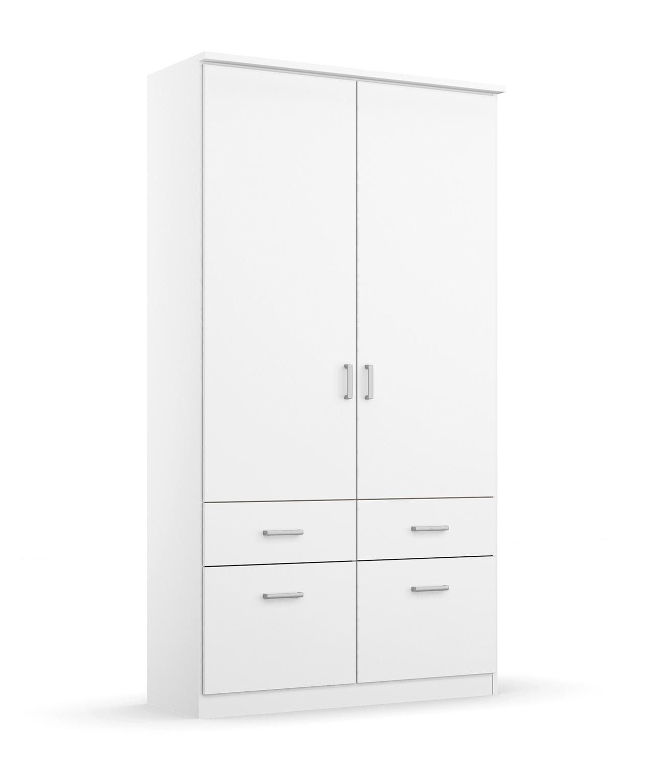 Lieferumfang | 1 Kleiderschrank mit 2 Türen, 4 Schubladen, 2 Einlegeböden und 1 Kleiderstange |