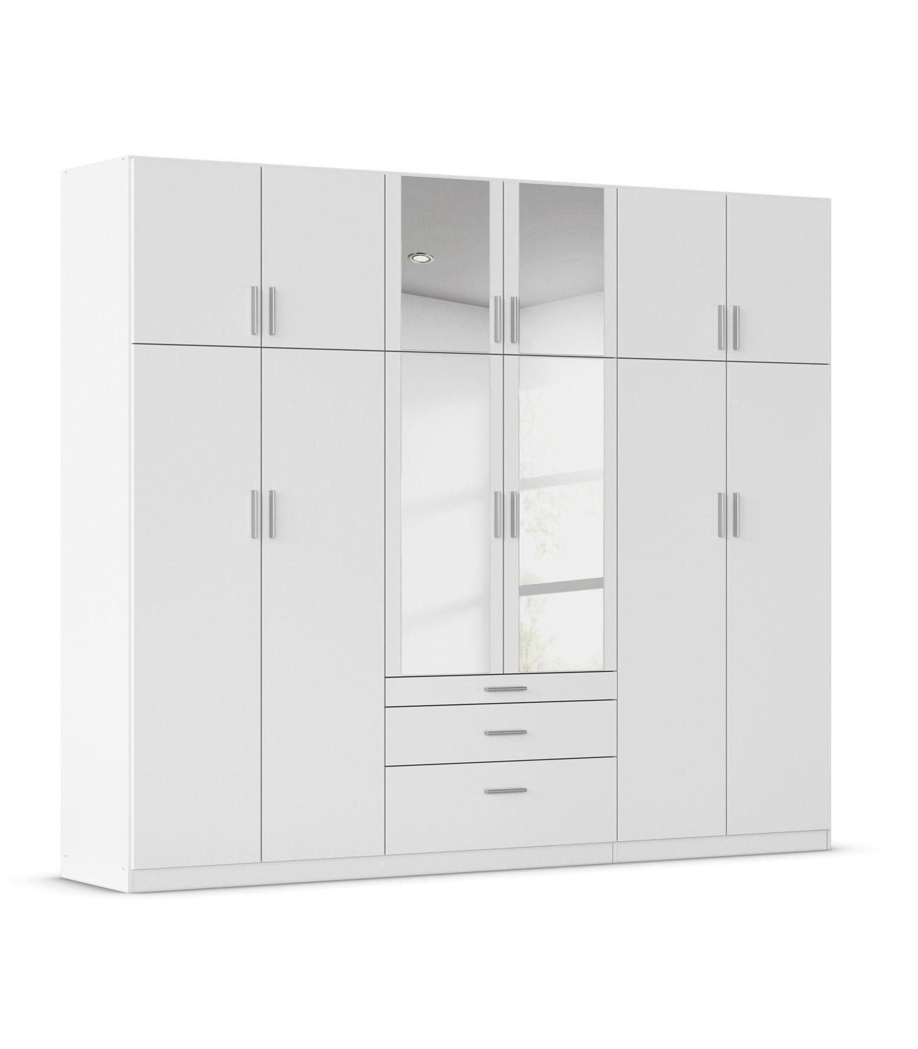 Lieferumfang | 1 Kleiderschrank mit 4 Spiegeltüren, 8 Türen, 3 Schubladen, 2 Kleiderstangen und 11 Einlegeböden |