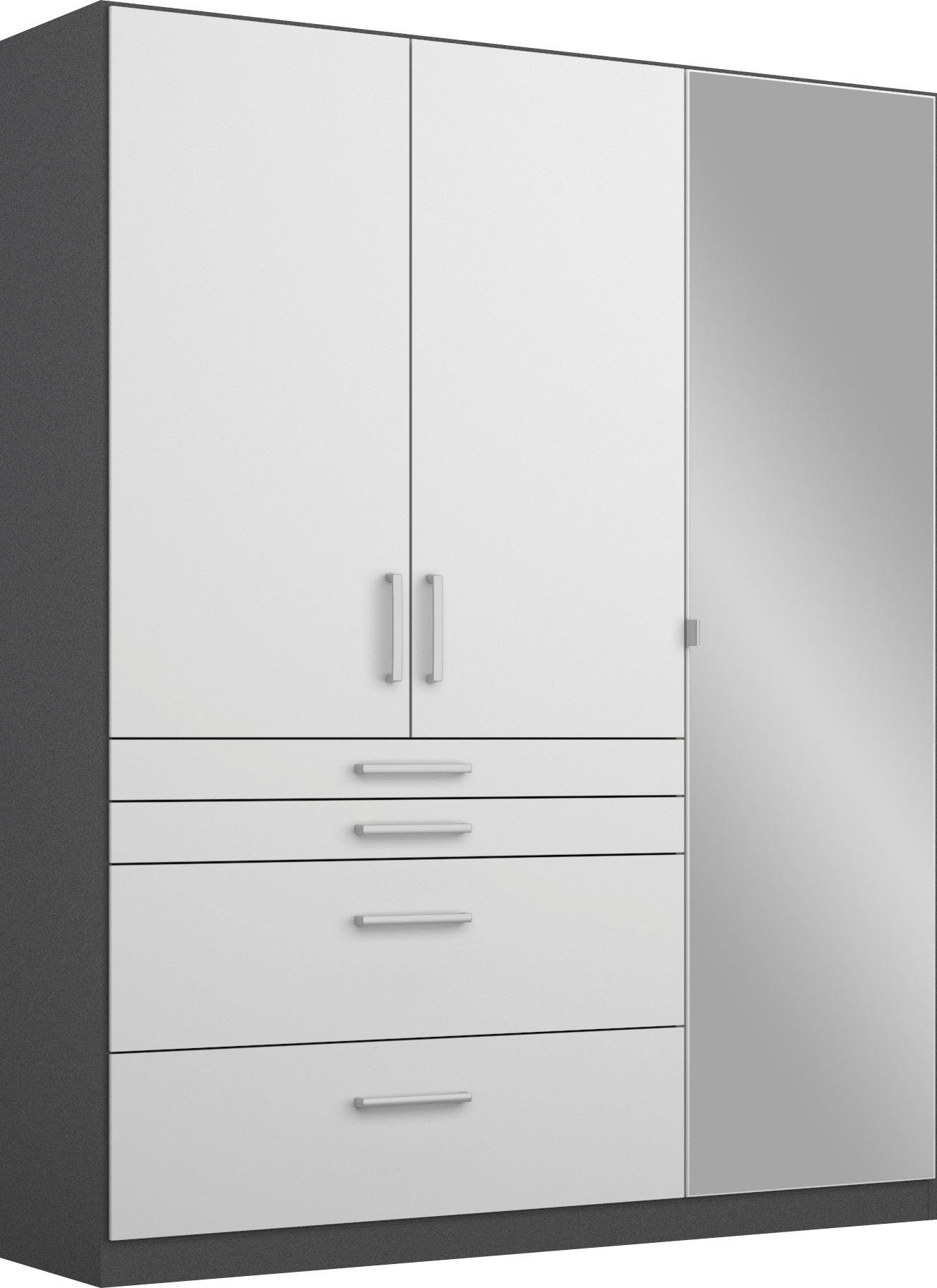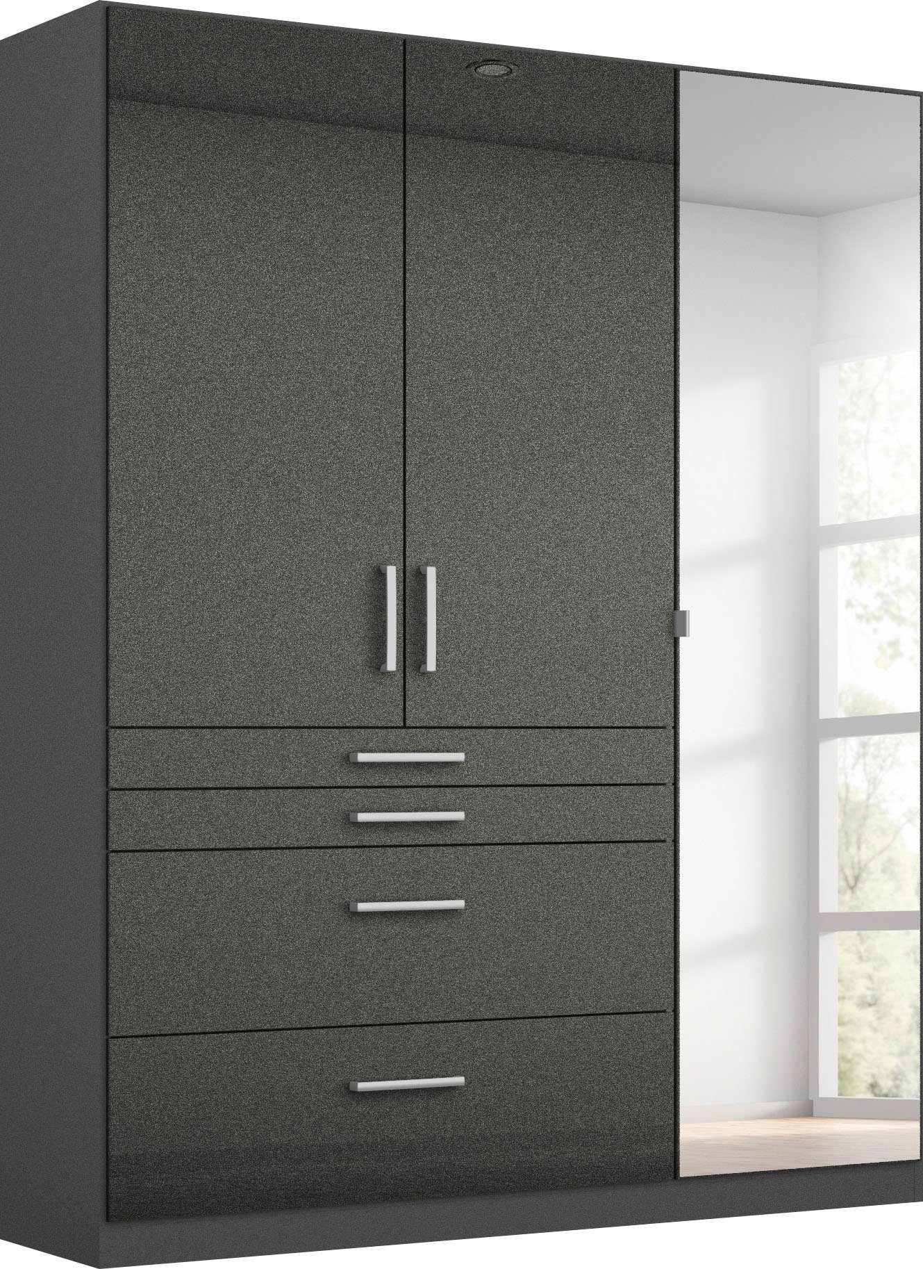 Der moderne Kleiderschrank der Serie »Homburg« von rauch überzeugt durch eine stilvolle Optik und vielfältigen Stauraum. Der Schrank ist in verschiedenen Breiten und Farben bestellbar und lässt sich mühelos in bestehende Wohnkonzepte einfügen. Die hochglänzende Schrankfront des Schranks, in Kombination mit Spiegel, schafft dabei eine elegante Raumatmosphäre. Hinter den Drehtüren kannst du deine Kleidung auf Kleiderstangen und Fachböden im Schrank aufbewahren. Die gelungene Anordnung von schmalen und hohen Schubkästen erweist sich optisch und funktional als durchdacht. Hier finden Wäsche, Socken und Co. ausreichend Platz. Im oberen schmalen Schubkasten des Drehtürenschranks ist eine praktische Inneneinteilung integriert. So verstaust du kleinere Dinge, wie beispielsweise Schmuck, die du besonders ordentlich aufbewahren willst.