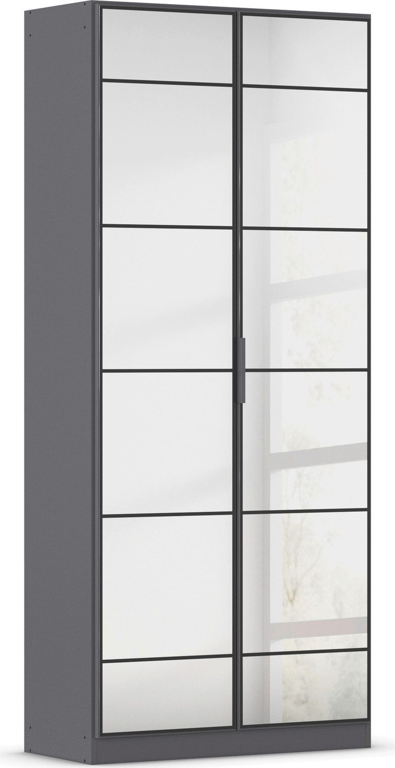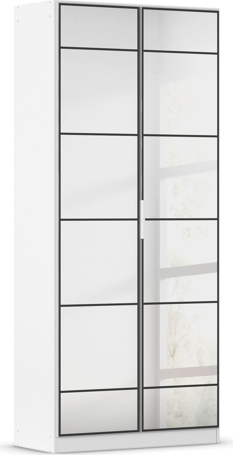 Der Kleiderschrank »ACERO« von rauch kombiniert modernen Industrial-Stil mit praktischen Stauraummöglichkeiten. Der Schrank ist in den Farben Weiß, Schwarz und einer ansprechenden Holzoptik erhältlich, sodass er sich harmonisch in unterschiedliche Einrichtungsstile einfügt. Ein besonderes Highlight sind die Loft-Spiegeltüren mit markanten schwarzen Streben, die dem Schrank seine charakteristische Loft-Optik verleihen. Die Spiegel sorgen nicht nur für eine optische Vergrößerung des Raumes, sondern bringen auch mehr Helligkeit und Leichtigkeit in dein Zuhause. Dank der schmaleren Tiefe eignet sich der Kleiderschrank ideal für kleinere Räume oder engere Flure, ohne dabei an Funktionalität einzubüßen. Die geradlinigen Griffe, die passend in der jeweiligen Frontfarbe gestaltet sind – in Weiß oder Schwarz –, unterstreichen das klare, moderne Design. Im Inneren überzeugt der Schrank durch höhenverstellbare Einlegeböden, die dir helfen, den Stauraum individuell an deine Bedürfnisse anzupassen. Ob Kleidung, Schuhe oder Accessoires – alles lässt sich übersichtlich und ordentlich verstauen, was den Schrank auch zur perfekten Garderobenlösung macht.
