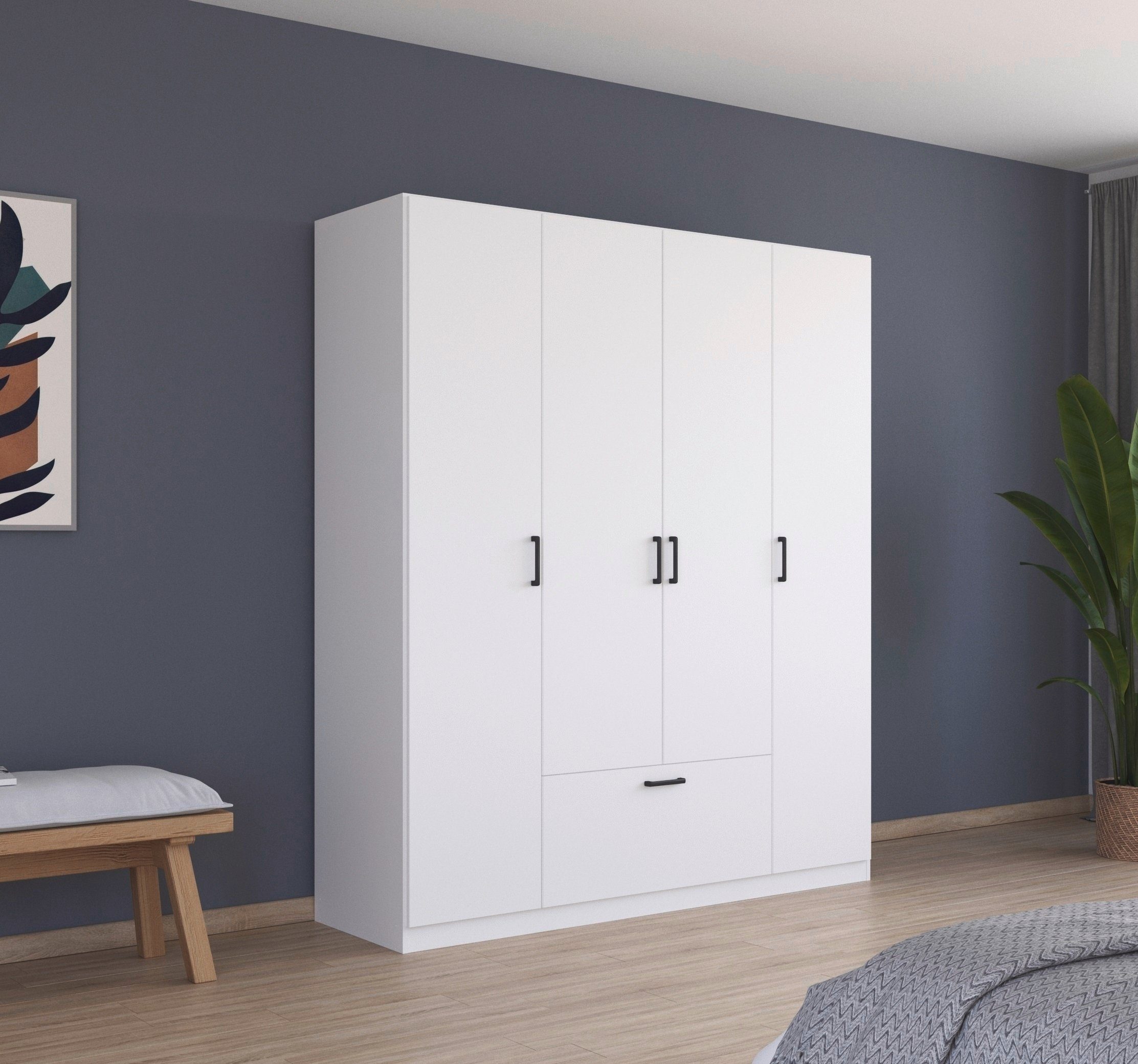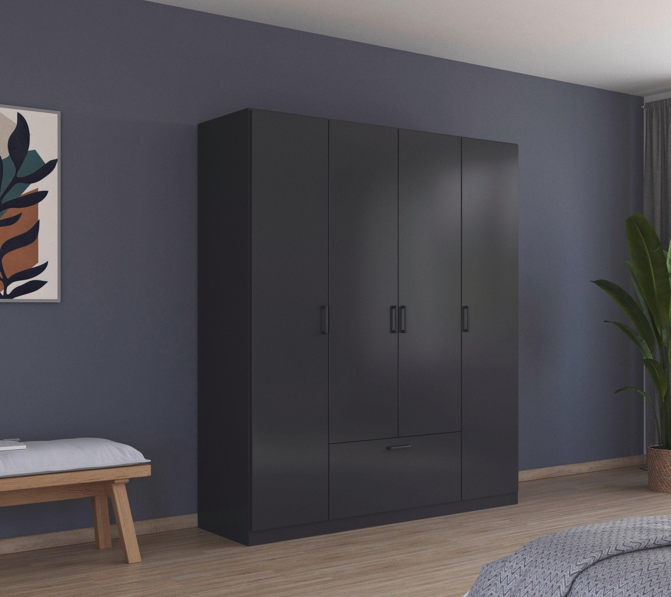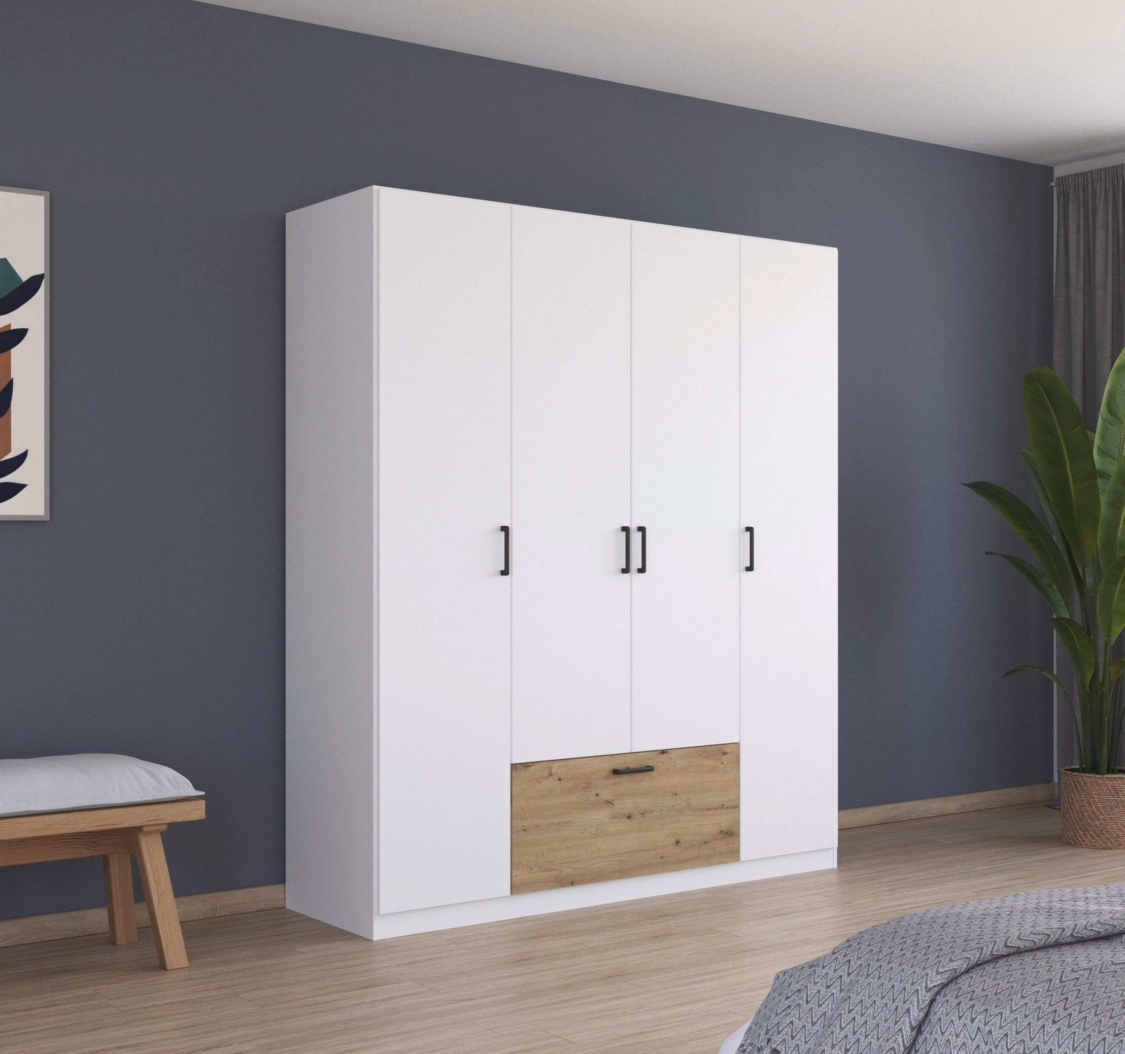 Der Drehtürenschrank »Bari« von rauch vereint zeitloses Design mit Funktionalität und vielfältigen Gestaltungsmöglichkeiten. Er ist in drei verschiedenen Breiten erhältlich und passt sich somit perfekt den individuellen Anforderungen deines Raumes an. Bari verfügt über eine extra große Schublade, die dir jede Menge Stauraum bietet. Darin finden zum Beispiel Decken, Kissen, Unterwäsche und Socken ihren Platz. Dank der Wahlmöglichkeit zwischen zwei verschiedenen Frontfarben – einem zeitlosen Weiß oder einem modernen Graumetallic – fügt sich der Kleiderschrank perfekt in jede Einrichtung ein. Optional kann die Schublade in der Absetzungsfarbe Eiche Artisan gewählt werden. Dies verspricht einen zusätzlichen Farbakzent. Dabei sorgt ein moderner Griff in Graumetallic für eine harmonische Optik und das einfache Öffnen der Drehtüren und Schublade.