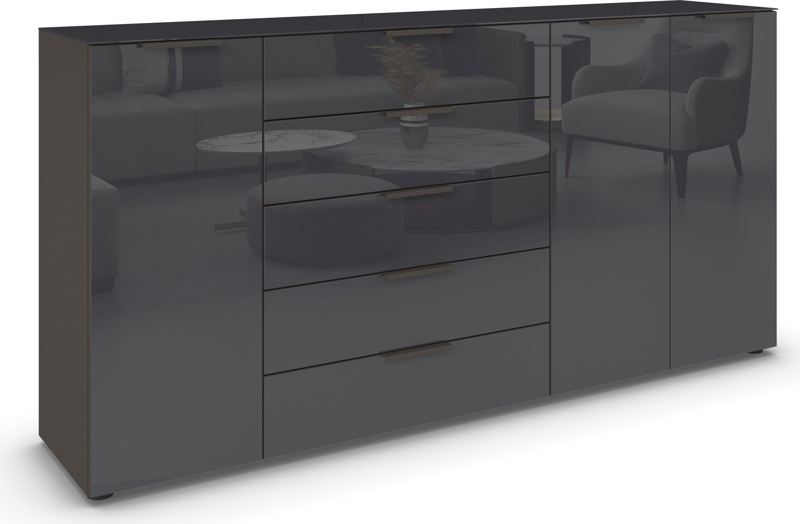 Die Kommode »FLIPP« von rauch ist nicht nur ein Möbel, sondern ein Statement für modernes Design und clevere Organisation. Dank der breiten Farbauswahl - darunter auch die wohnlich warme Nuance Beige - kannst du dir deinen Wohnraum ganz individuell und nach deinen Wünschen einrichten. Ein Highlight der Kommode ist die Front mit Glasauflage, die dem Möbelstück einen Hauch von Eleganz verleiht und ganz luftig und leicht wirkt. Nicht nur die Front ist mit einer edlen Glasauflage ausgestattet, auch der Oberboden der Kommode schenkt mit glänzender Glasauflage optische Leichtigkeit. Mit fünf großzügigen Schubkästen und drei Türen bietet dir das Möbel reichlich Stauraum, um deine Habseligkeiten übersichtlich und geordnet zu halten. Die Schubkästen verfügen über Selbsteinzug und Dämpfung, wodurch sie leise geschlossen werden können – für eine ruhige Atmosphäre in deinem Zuhause. Auch die Türen sind mit Scharnierdämpfung ausgestattet, was ein behutsames Спрятать gewährleistet. Die höhenverstellbaren Füße erlauben es dir, die Kommode an deine gewünschte Höhe anzupassen, während die farblich passenden Griffe das moderne Design abrunden.
