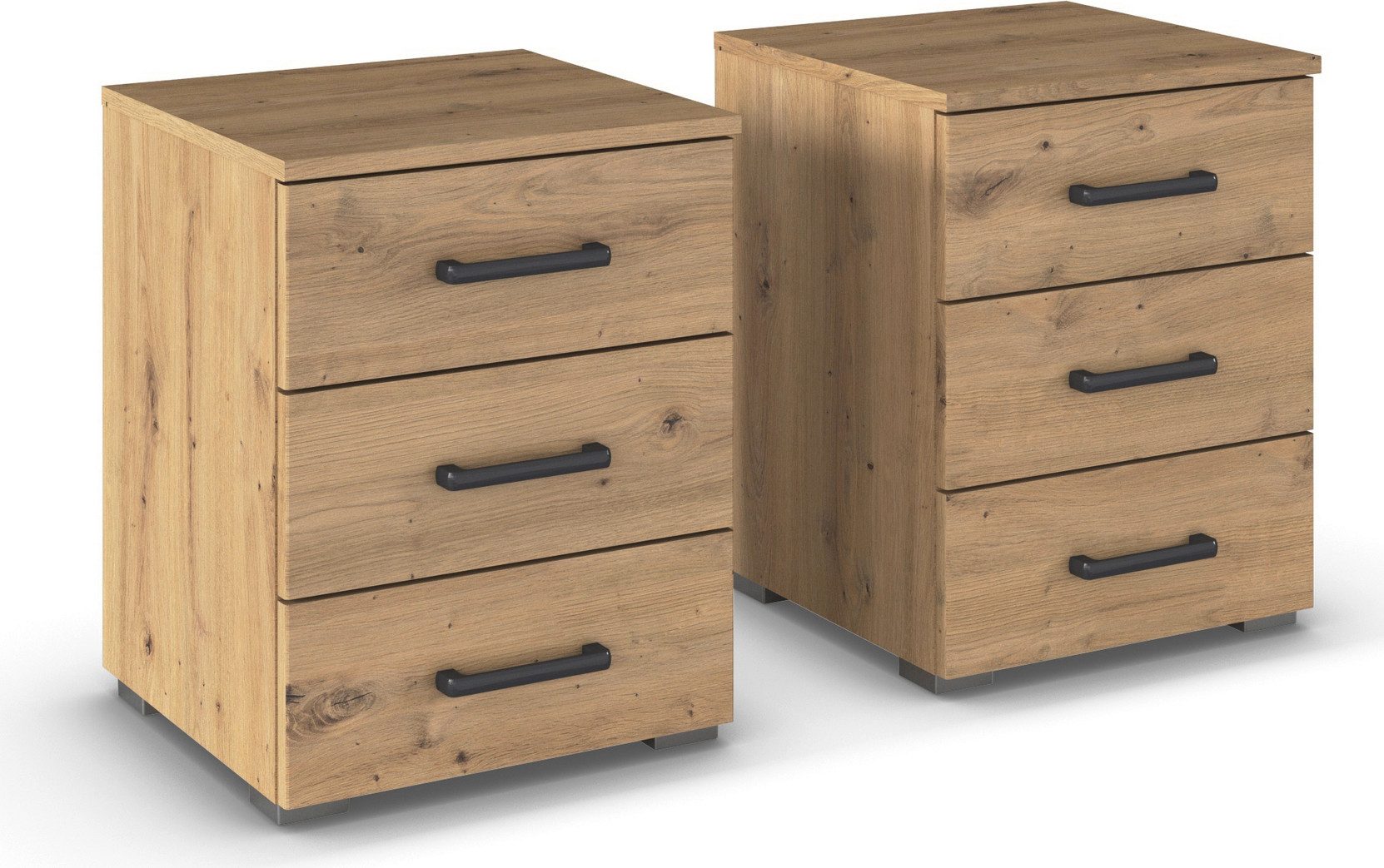 Der moderne Nachttisch »Maika« von rauch kombiniert stilvolles Design mit praktischer Funktionalität. Mit drei geräumigen Schubladen bietet er großzügigen Stauraum für persönliche Gegenstände und sorgt gleichermaßen für Ordnung in deinem Schlafzimmer. Erhältlich in einem 2er-Set wird der Stauraum sogar noch einmal verdoppelt. Die zwei Farboptionen ermöglichen es dir, das Set an deinen individuellen Einrichtungsstil anzupassen. Die großzügige Ablagefläche bietet zusätzlichen Platz für eine Lampe, einen Wecker oder andere Utensilien, die du in Griffweite behalten möchtest.