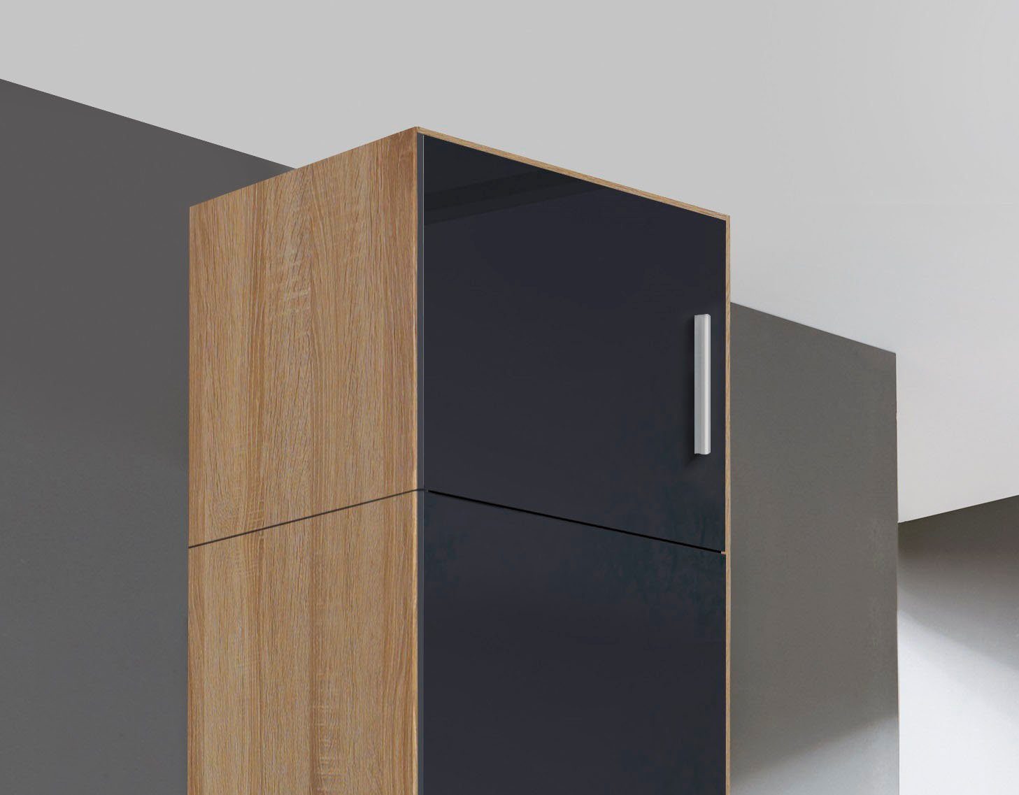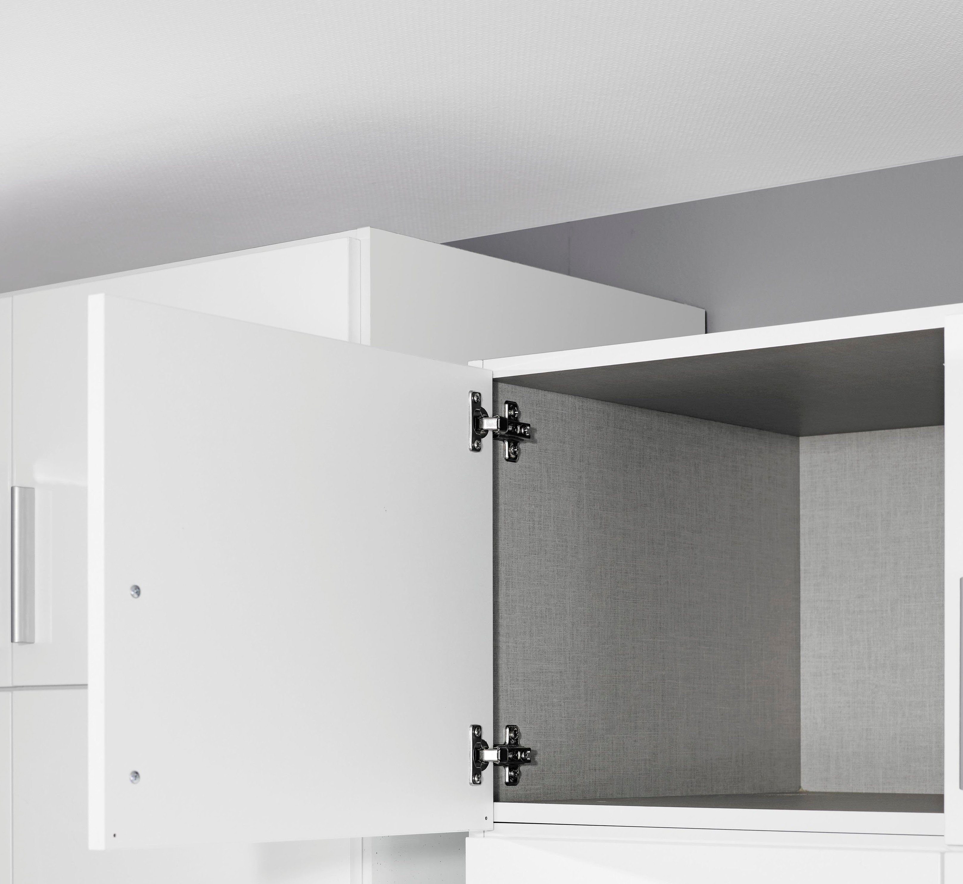 Wissenswertes | Für den 1-trg. Schrank bitte den Türanschlag für rechts oder links bestellen, Innendekor in heller Leinenoptik, Passend für den Schrank Celle |