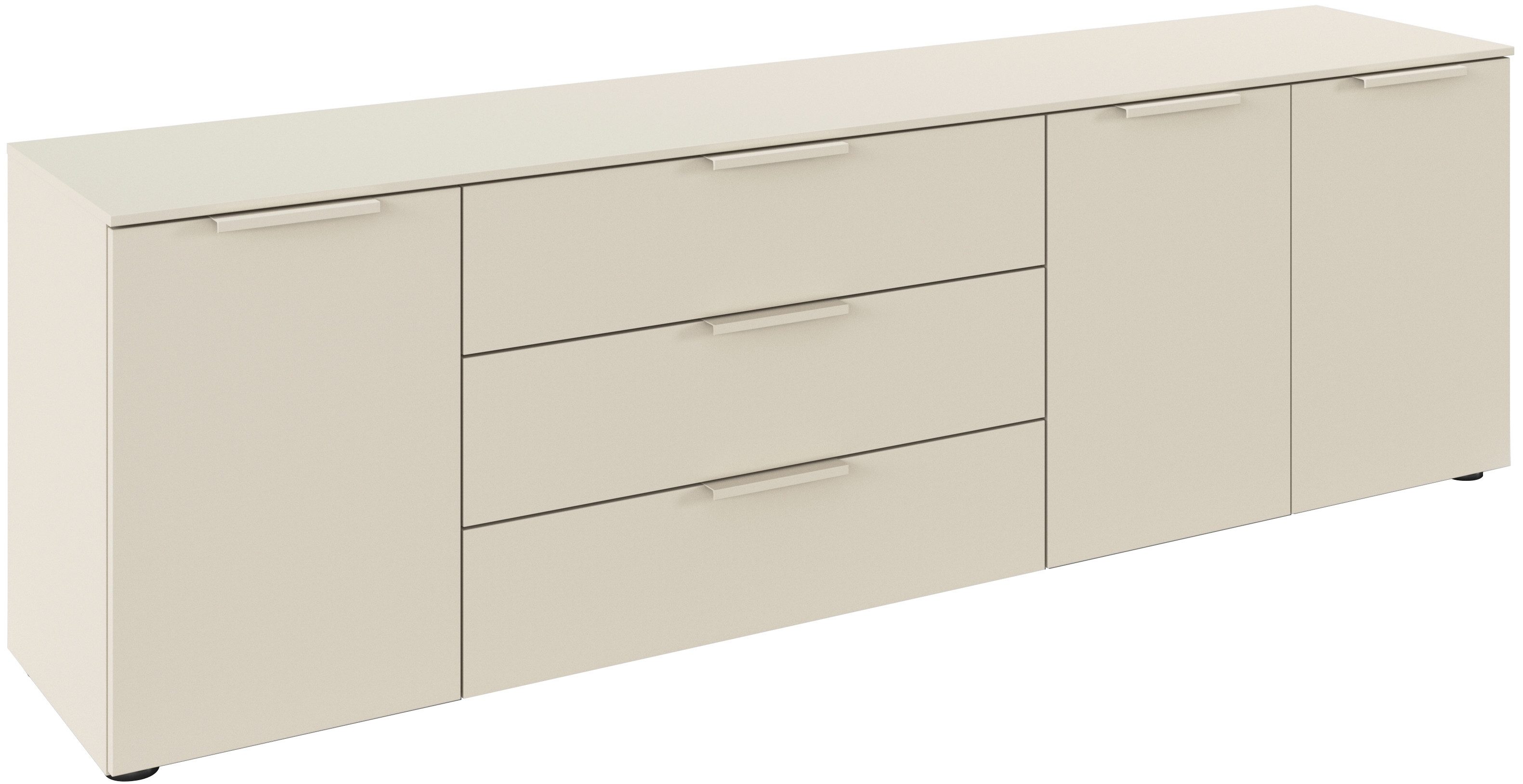 Das Sideboard »FLIPP« von rauch ist nicht nur eine Kommode, sondern ein Statement für modernes Design und clevere Organisation. Dank der breiten Farbauswahl - darunter auch die wohnlich warme Nuance Beige - kannst du dir deinen Wohnraum ganz individuell und nach deinen Wünschen einrichten. So passt sich das Sideboard flexibel deiner Inneneinrichtung an. Mit drei großzügigen Schubkästen und drei Türen bietet es dir reichlich Stauraum, um deine Habseligkeiten übersichtlich und geordnet zu halten. Die Schubkästen verfügen über Selbsteinzug und Dämpfung, wodurch sie leise geschlossen werden können – für eine ruhige Atmosphäre in deinem Zuhause. Auch die Türen sind mit Scharnierdämpfung ausgestattet, was ein behutsames Спрятать gewährleistet. Die höhenverstellbaren Füße erlauben es dir, das Sideboard an deine gewünschte Höhe anzupassen, während die farblich passenden Griffe das moderne Design abrunden.