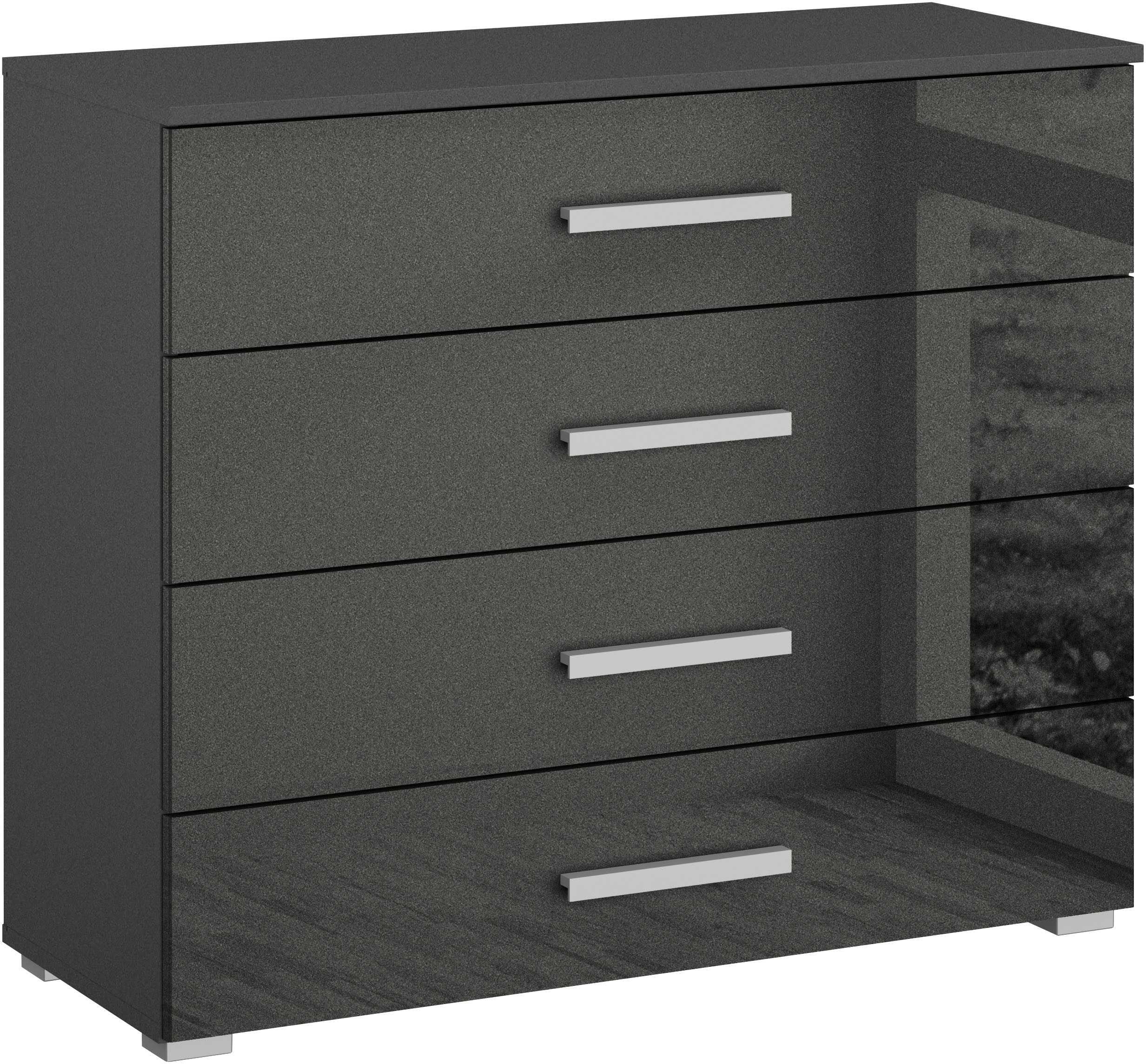 Die Schubkastenkommode »KOLUNA« von rauch ist ein wahrer Stauraum-Allrounder und lässt sich dank seiner modernen Farbauswahl mit Hochglanzfront in jedem Raum deines Zuhauses integrieren. Der praktische Ordnungshelfer unterstützt dich so im Schlafzimmer, Wohnzimmer, Flur oder auch Büro deine persönlichen Gegenstände zu organisieren. Auf der oberen Ablagefläche kannst du deine Dekoration gekonnt in Szene setzen. Die vier Schubladen öffnest du mit minimalistischen Griffen und hast so den Inhalt direkt auf einen Blick. Optional kann die Kommode durch einen farblich abgestimmten Kleiderschrank, Bett oder Nachttisch ergänzt werden.