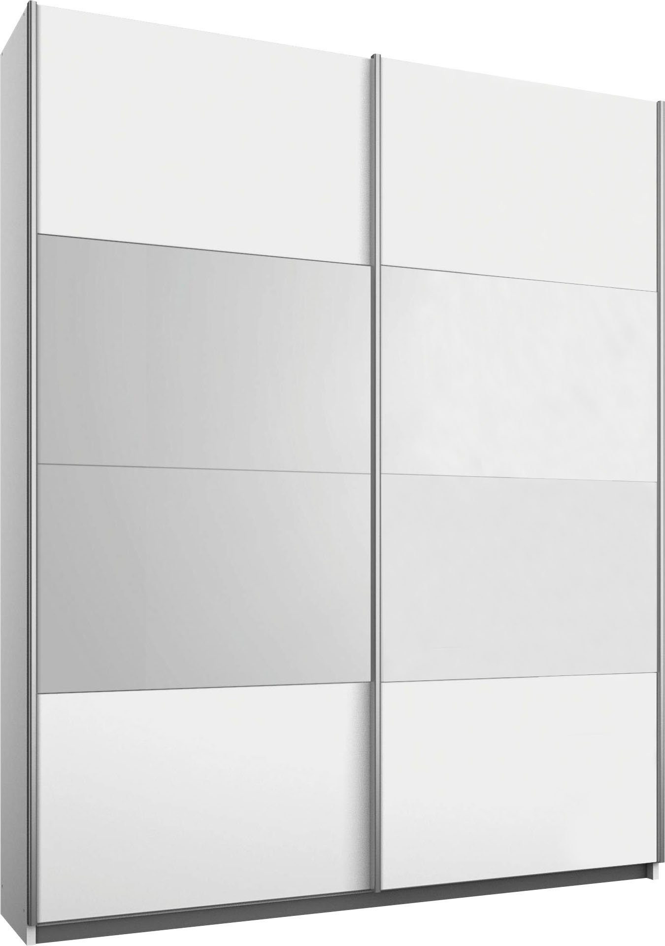 Wissenswertes | Die Front besteht aus 8 Einzelelementen (Breite 315 cm mit 12 Elementen). Bei Breite 315 cm, mit Spiegel, sind die Außentüren mit Holzelementen und die Mitteltür mit Spiegelelementen. Innendekor in heller Leinenoptik |