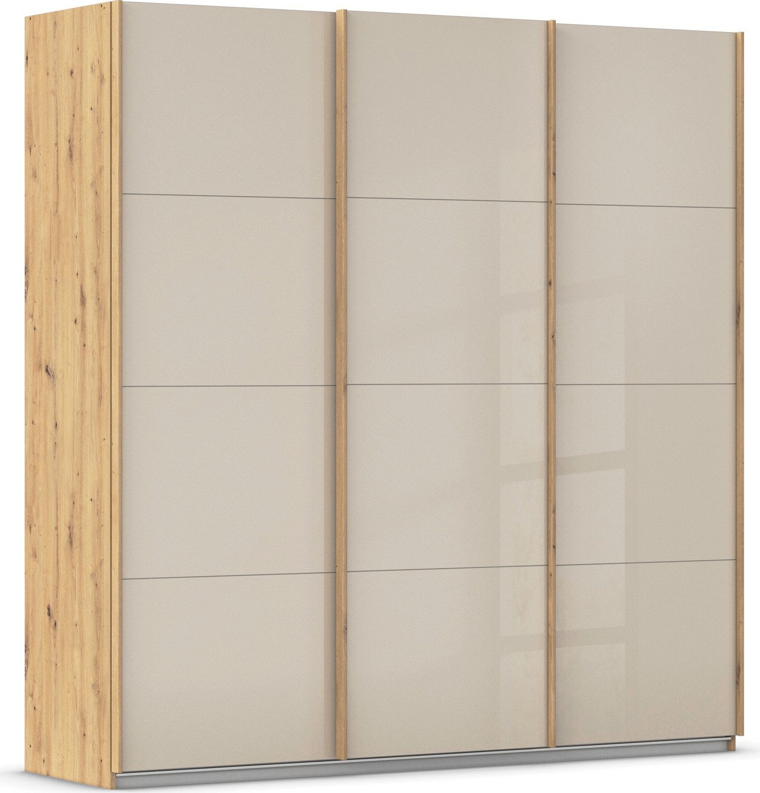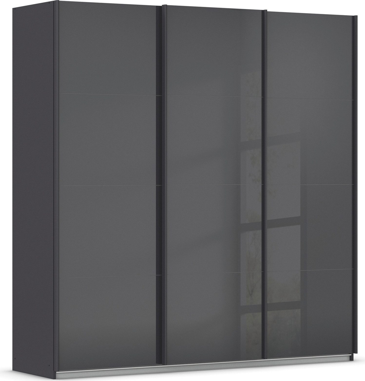 Der Schwebetürenschrank »AGORDO« von rauch versprüht ein modernes Wohnambiente und sorgt dabei für Ordnung. Schicke Griffleisten am Kleiderschrank sowie eine moderne Auswahl an Glasfarben machen das Design des Kleiderschrankes aus. Je nach Einrichtungsstil und verfügbarem Platz kannst du zwischen zahlreichen Farben, Breiten und Höhen wechseln. Das Design und die Glasfront des Schrankes kreieren eine gehobene und anspruchsvolle Atmosphäre für geschmackvolle Wohnvorstellungen. Die großflächigen Schwebetüren von dem Schrank öffnest du ganz einfach mit Hilfe von durchgängigen Griffleisten, wobei die Türen platzsparend zur Seite gleiten und so das geräumige Schrankinnere freigeben. Die Griffleisten sind wahlweise in Alufarben oder Graumetallic erhältlich. Ein Highlight des Schwebetürenschrankes ist die komfortable Aufteilung mit vielen Stauraummöglichkeiten. Die stabilen Fachböden eignen sich besonders gut für die platzsparende Aufbewahrung deiner gefalteten Kleidung, so hast du im Schrank immer alles auf einen Blick. An den Kleiderstangen der Garderobe können Kleider, Hemden, Blusen und Co. faltenfrei aufbewahrt werden. Sowohl die Fachböden als auch die Kleiderstange lassen sich in der Höhe variabel montieren und passen sich ganz deinem eigenen Ordnungsstil an.