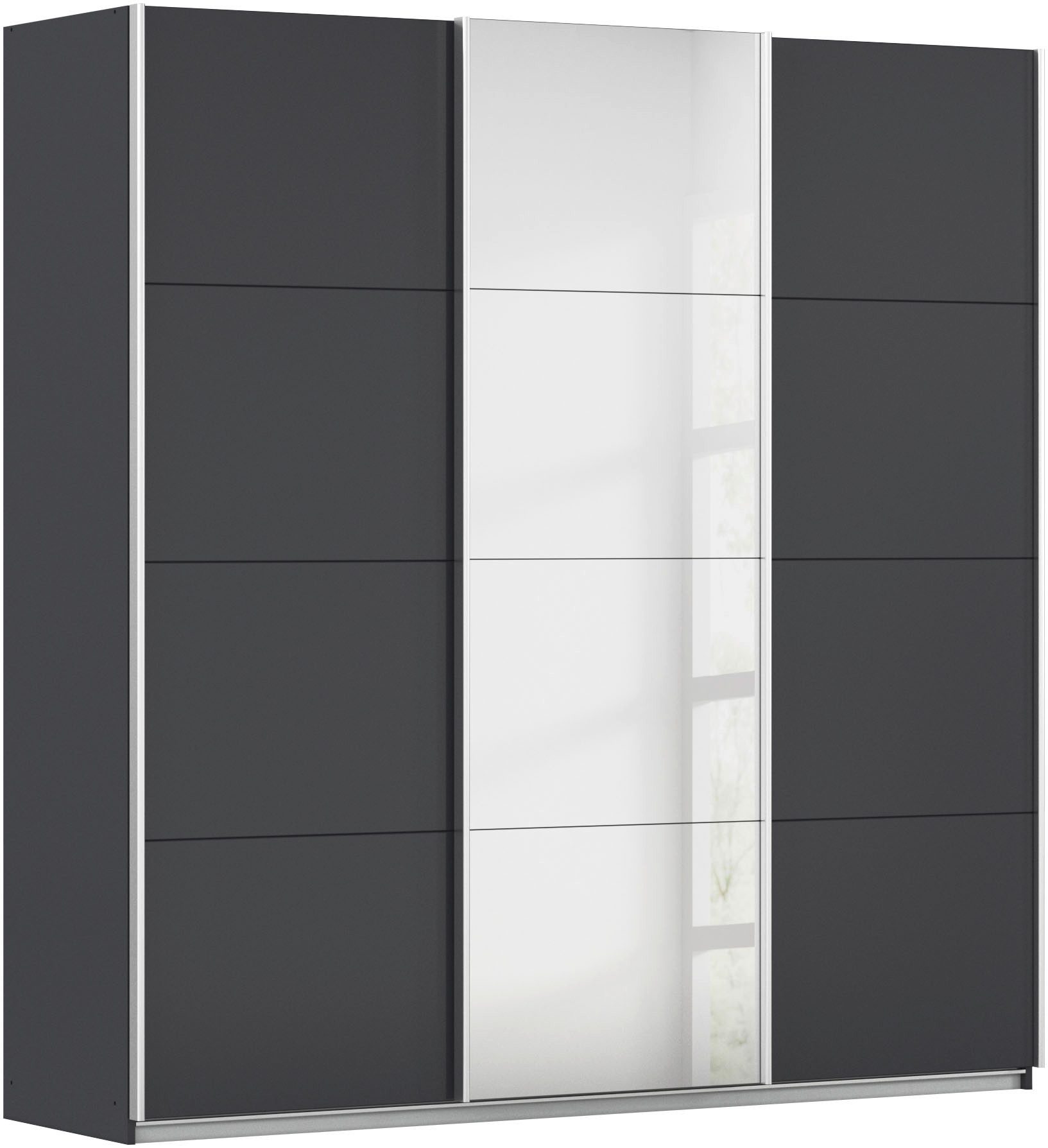 Ganz viel Stauraum bei attraktivem Design bietet der trendige Schwebetürenschrank »Cortona«. Zu seinem schönen Erscheinungsbild trägt die mittige Spiegelabsetzung bei, die den Raum optisch größer wirken lässt. Die Griffleisten aus Metall unterstreichen das moderne Flair des Schranks. In seinem Innenraum besteht viel Platz für die Unterbringung der gesamten Garderobe. In diversen Fächern, auf Kleiderstangen und in den Stoffboxen können Kleider, Mäntel, Hosen, Accessoires und sogar Schuhe einsortiert werden. Zur Ausstattung des Schranks gehören inklusive der Inneneinteilung, ein 2er-Set Stoffboxen und mehrere zusätzliche Böden.