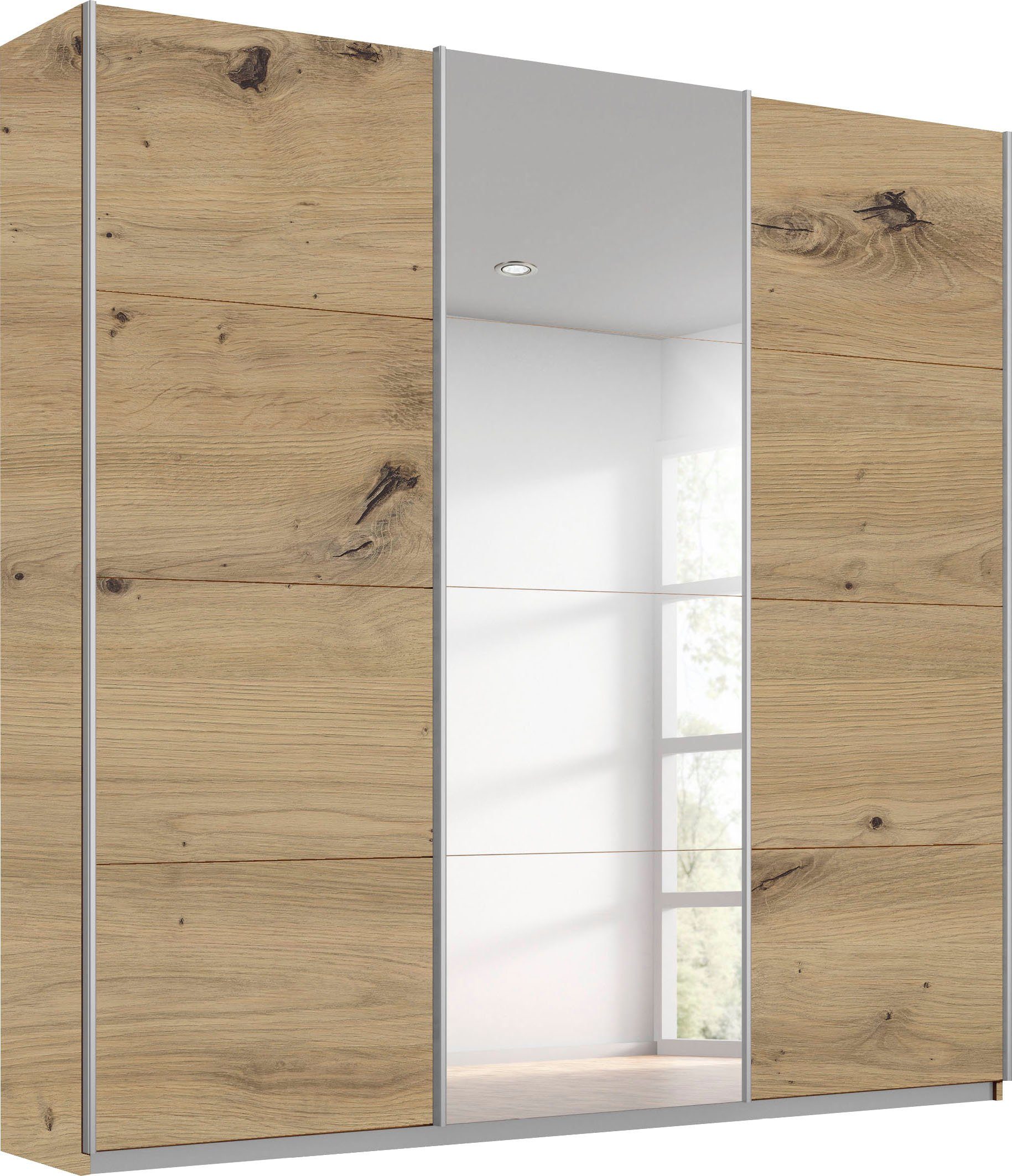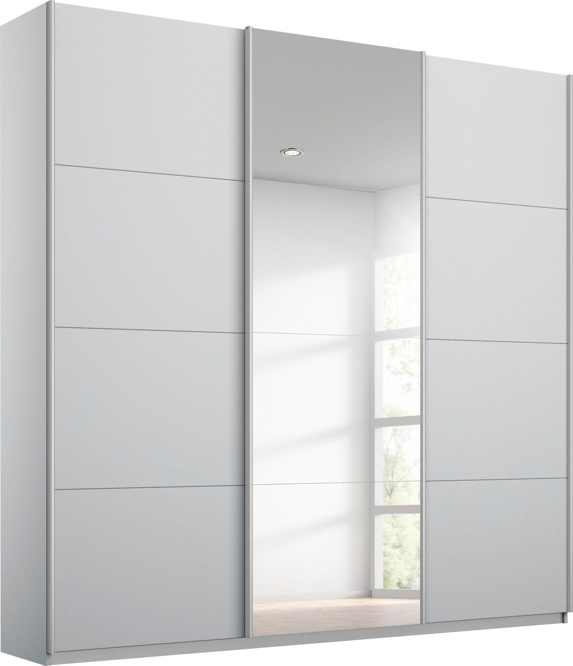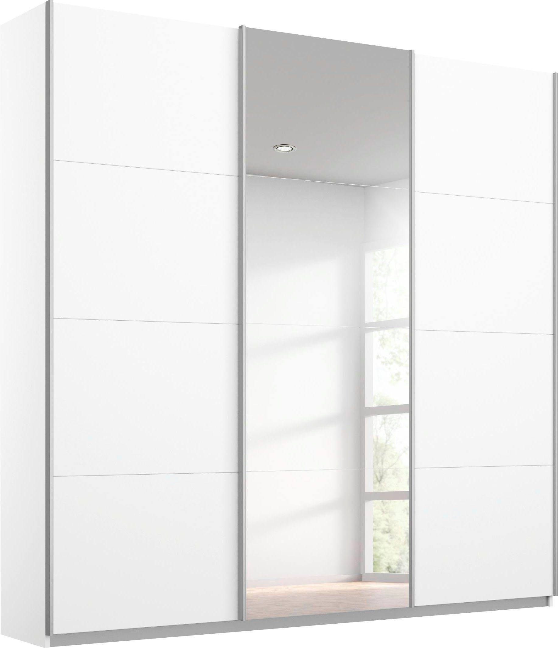 Mit klarer Form und einem zeitlos-schönen Design besticht der Schwebetürenschrank »Toma« von rauch. Ein großflächiger Spiegel erzeugt optische Weite, ein Plus vor allem in kleinen Räumen. Die drei großformatigen Türen lassen sich durch alufarbige Griffleisten einfach öffnen und schließen. Dabei gleiten die Schwebetüren beinahe schwerelos zur Seite und geben praktischen Stauraum frei. Die durchdachte Innenausstattung hilft jeden Zentimeter im Schrankinneren perfekt zu nutzen. Fachböden, Kleiderstangen sowie ein Regaleinsatz bieten mehr Übersicht und verwandeln den Schrank in ein wahres Stauraumwunder.