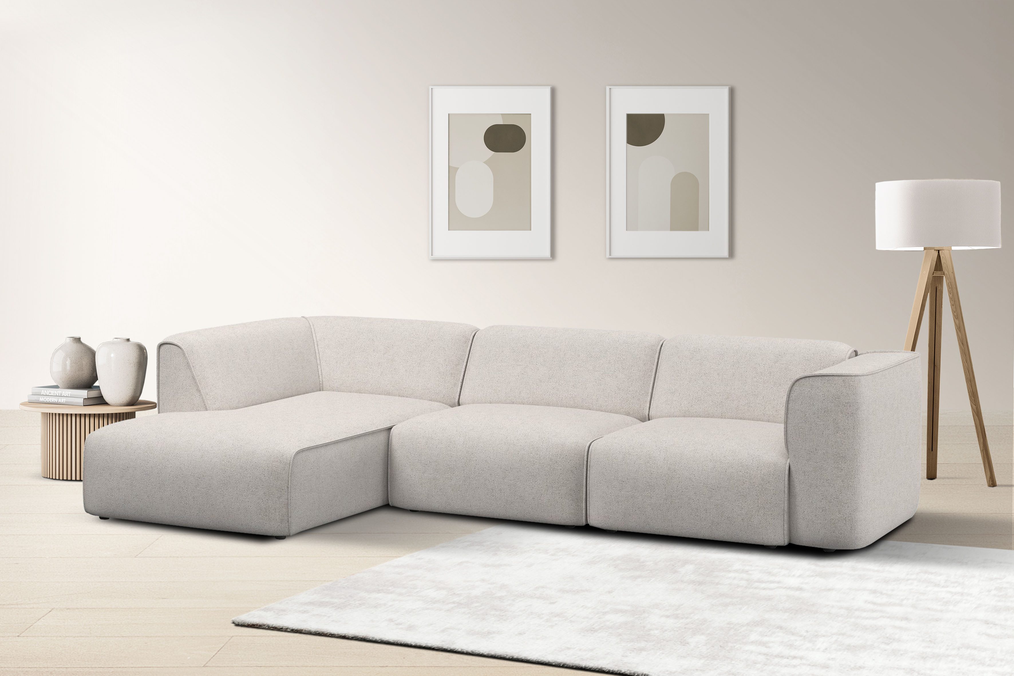 Sitzplatzmangel war gestern — das Ecksofa »Merid L-Form, jederzeit durch Module erweiterbar, B/T/H: 295/162/70 cm« von RAUM.ID.