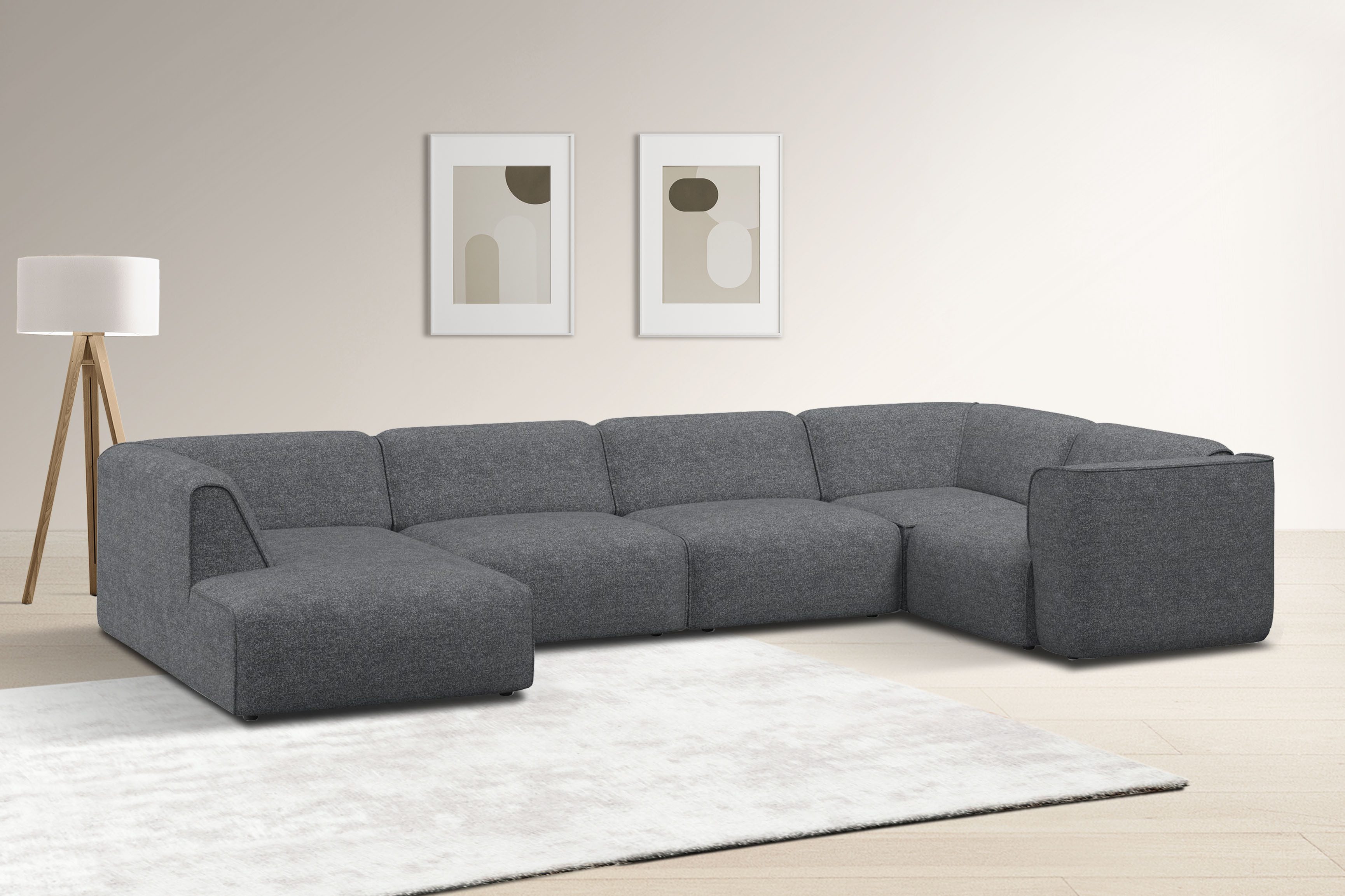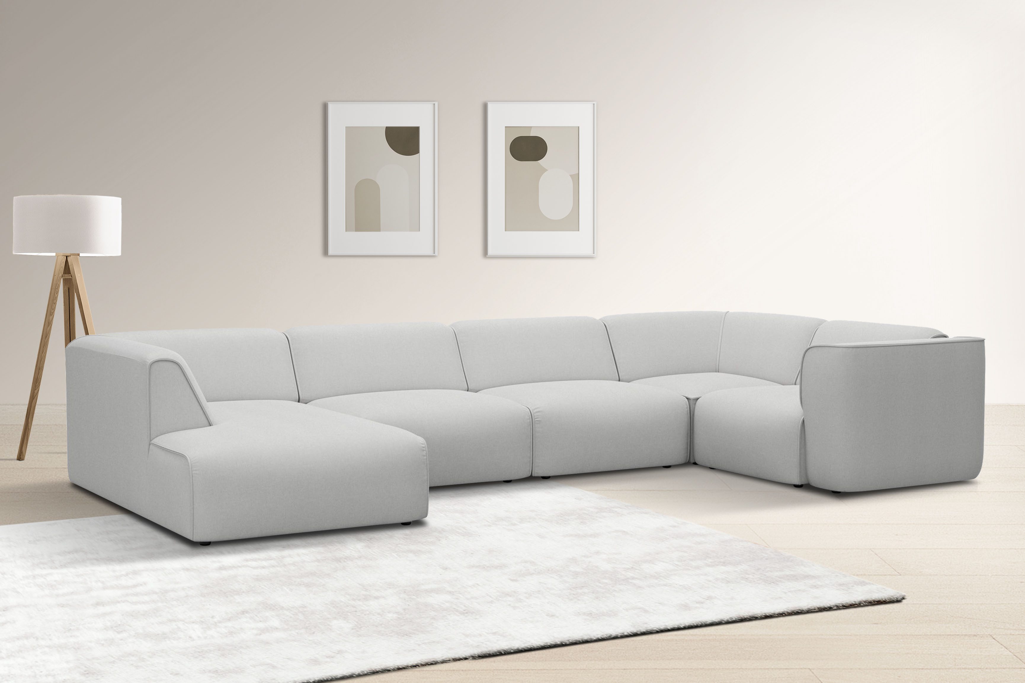 Mit der Wohnlandschaft »Merid U-Form, jederzeit durch Module erweiterbar, B/T/H: 367/206/70 cm« von RAUM.ID findet jeder einen kuscheligen Platz.
