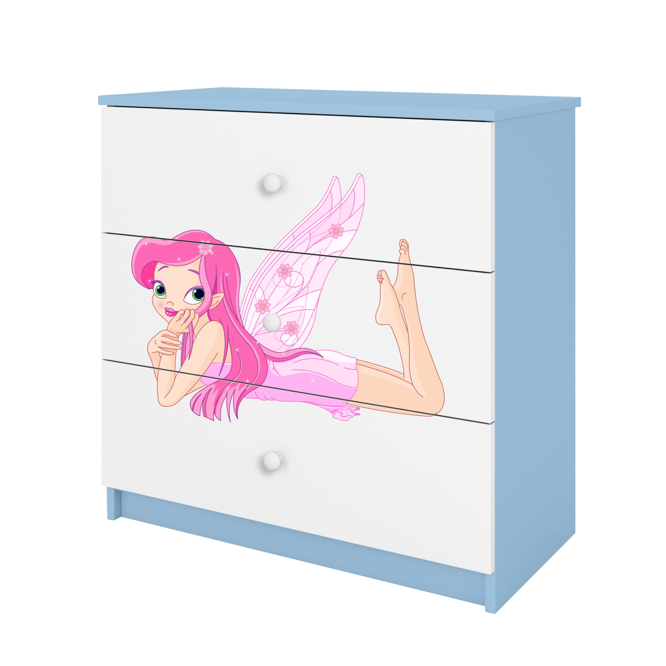 BABYDREAMS Kinderkommode mit Motiv Elfe mit Flügeln in der Farbe  Blau – Praktische Lösung für das Kinderzimmer.