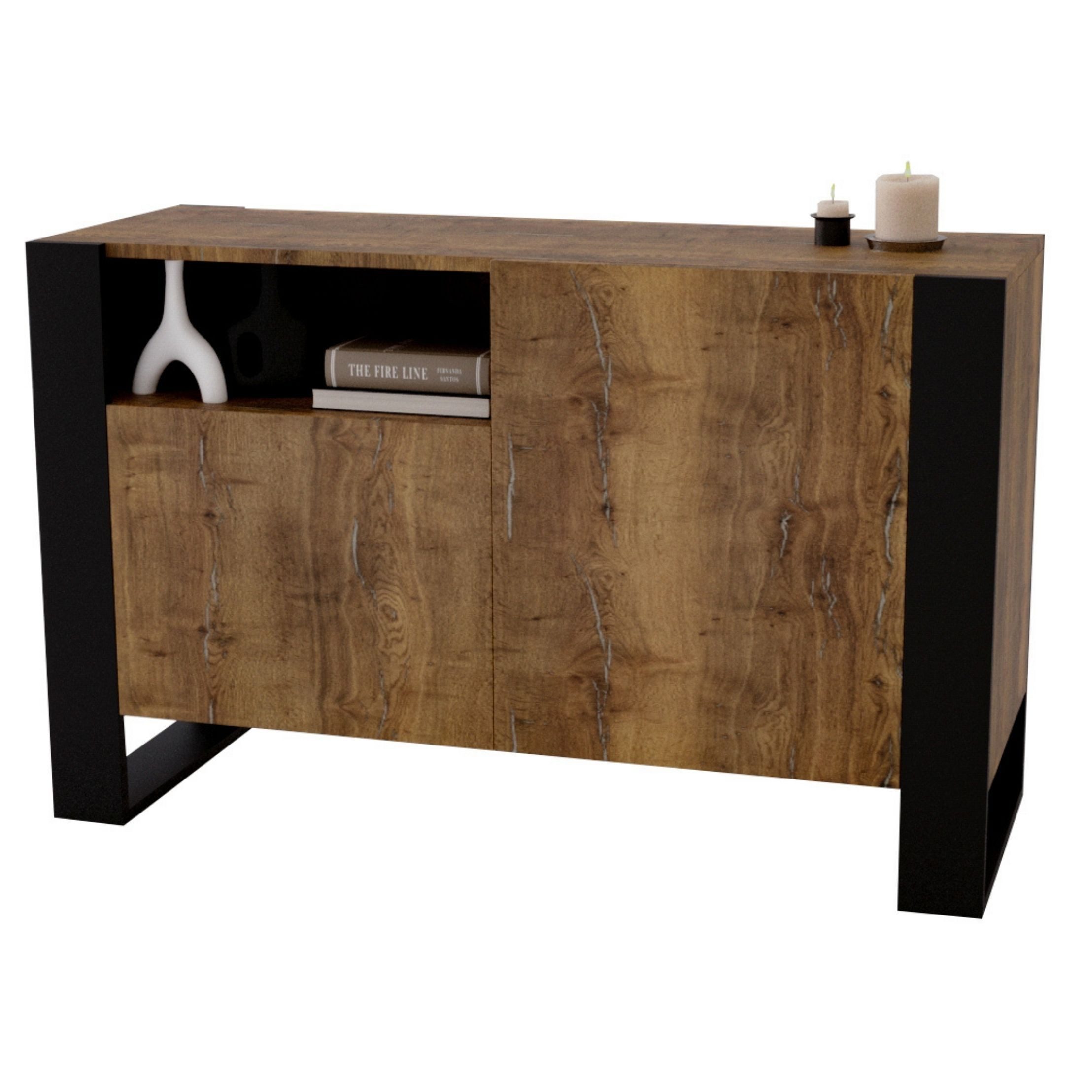 Lieferumfang - Die klappbare Wohnzimmerkommode wird demontiert und ohne Dekoration geliefert.