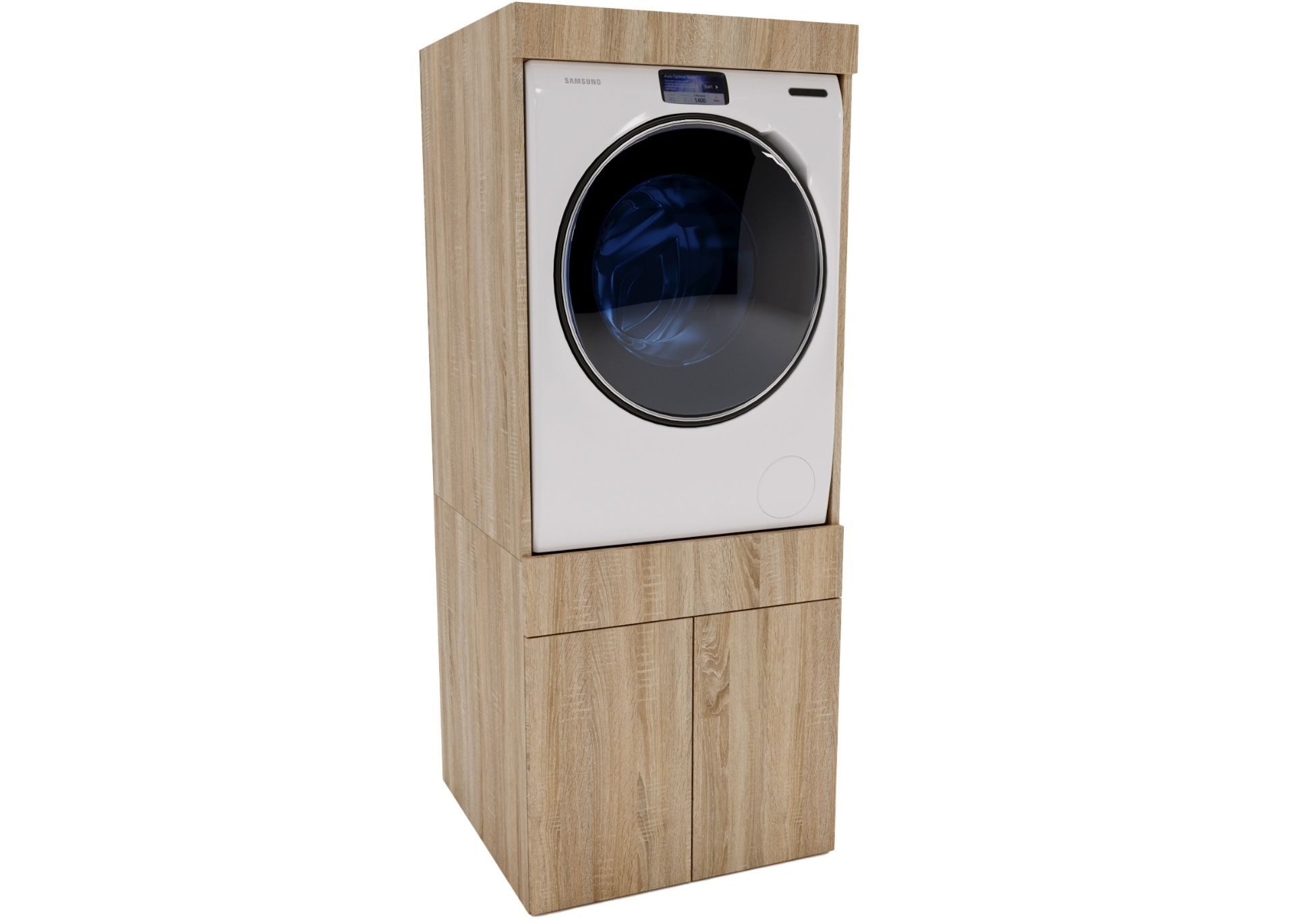 HERGESTELLT IN DER EU: Dieser Waschturm für Waschmaschine und Trockner wird in der EU hergestellt und zeichnet sich durch höchste Qualität aus. Er fügt sich problemlos in bestehende Möbel ein oder kann als Grundlage für ein neues Möbelstück dienen. Dank seiner speziellen Konstruktion reduziert der Schrank Geräusche von der Waschmaschine oder dem Wäschetrockner, wodurch eine angenehme und geräuscharme Nutzung gewährleistet ist.