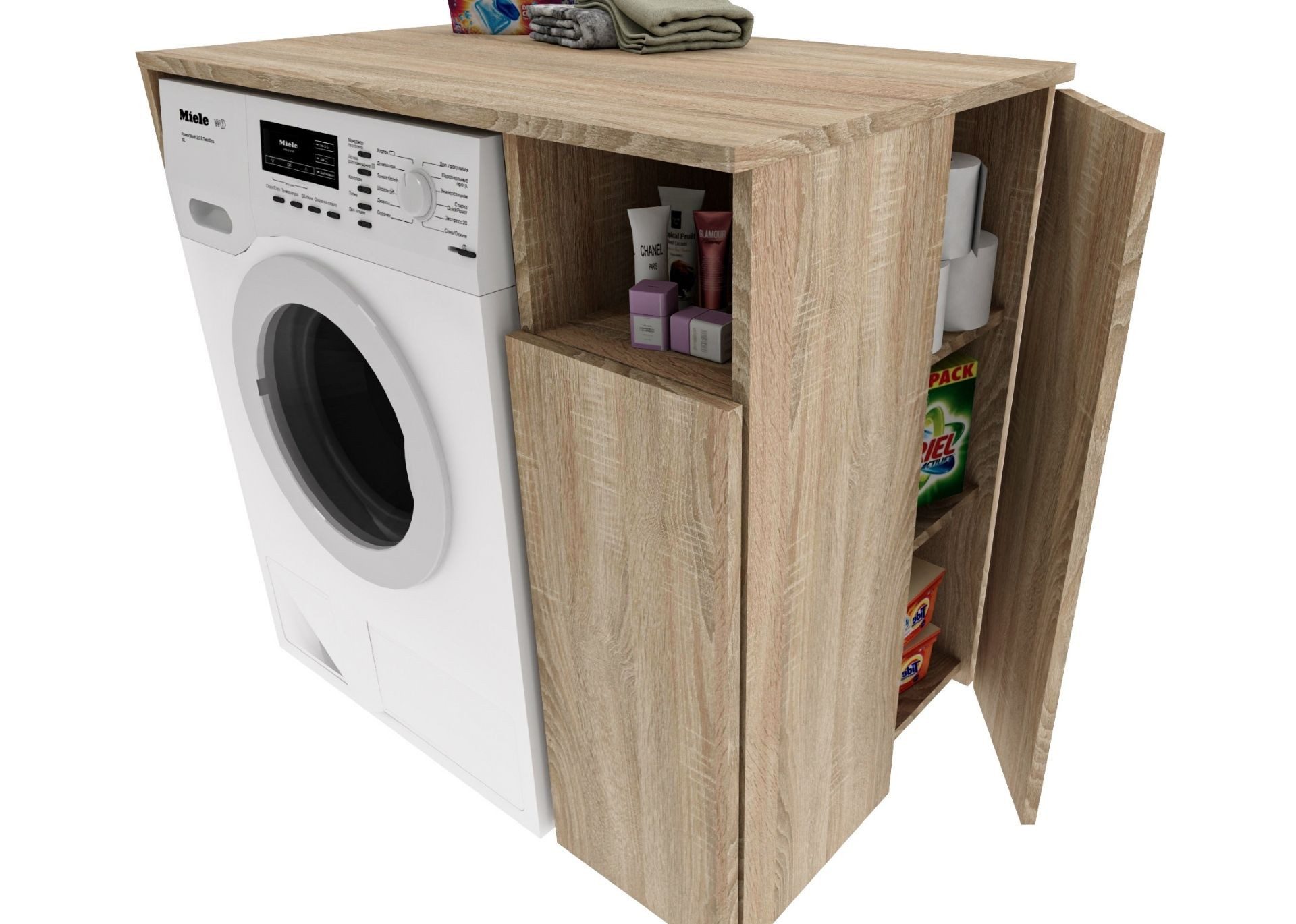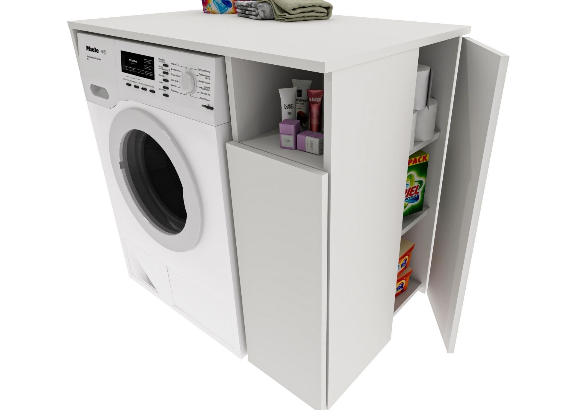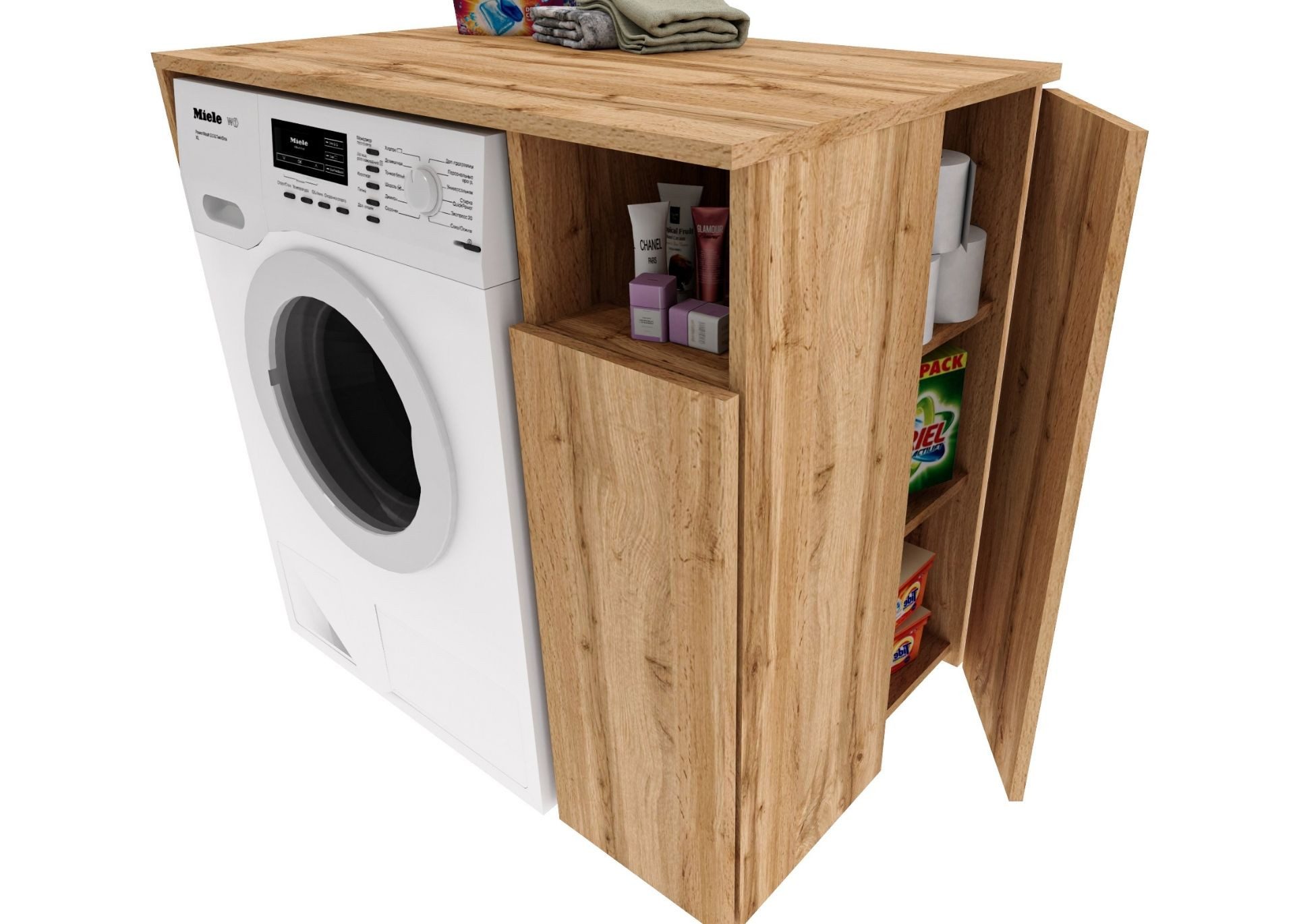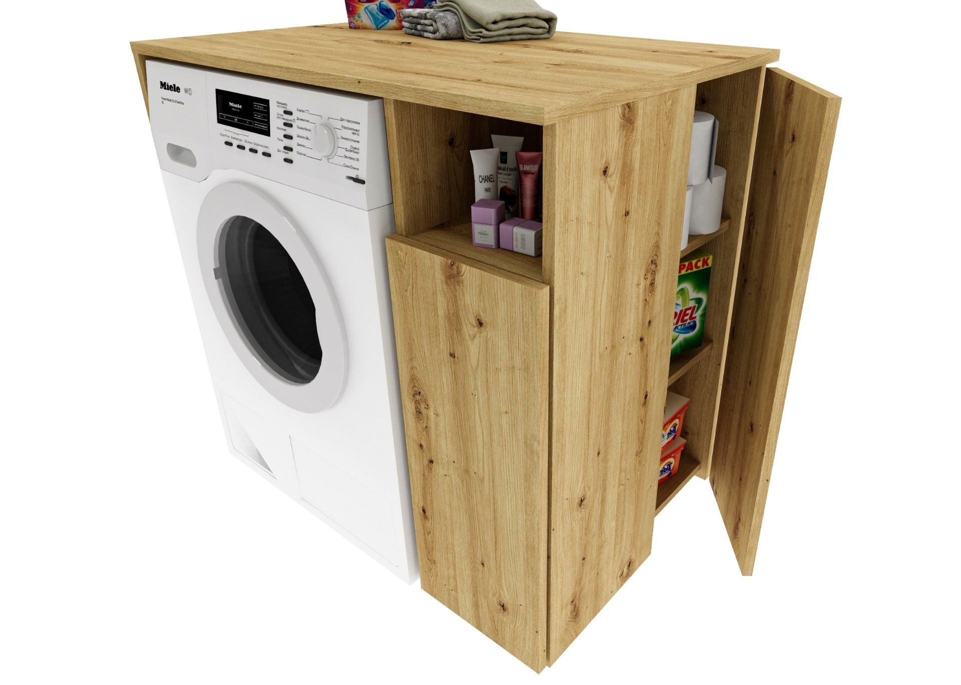PLATZOPTIMIERT: Mit kompakten Maßen von 66 cm Breite, 97 cm Höhe und 62 cm Tiefe bietet der Waschmaschinenschrank ausreichend Raum für eine Waschmaschine oder einen Trockner sowie zusätzliche Waschutensilien. Die integrierte Ablagefläche eignet sich ideal zur Aufbewahrung von Waschmittel, Weichspüler oder Handtüchern.