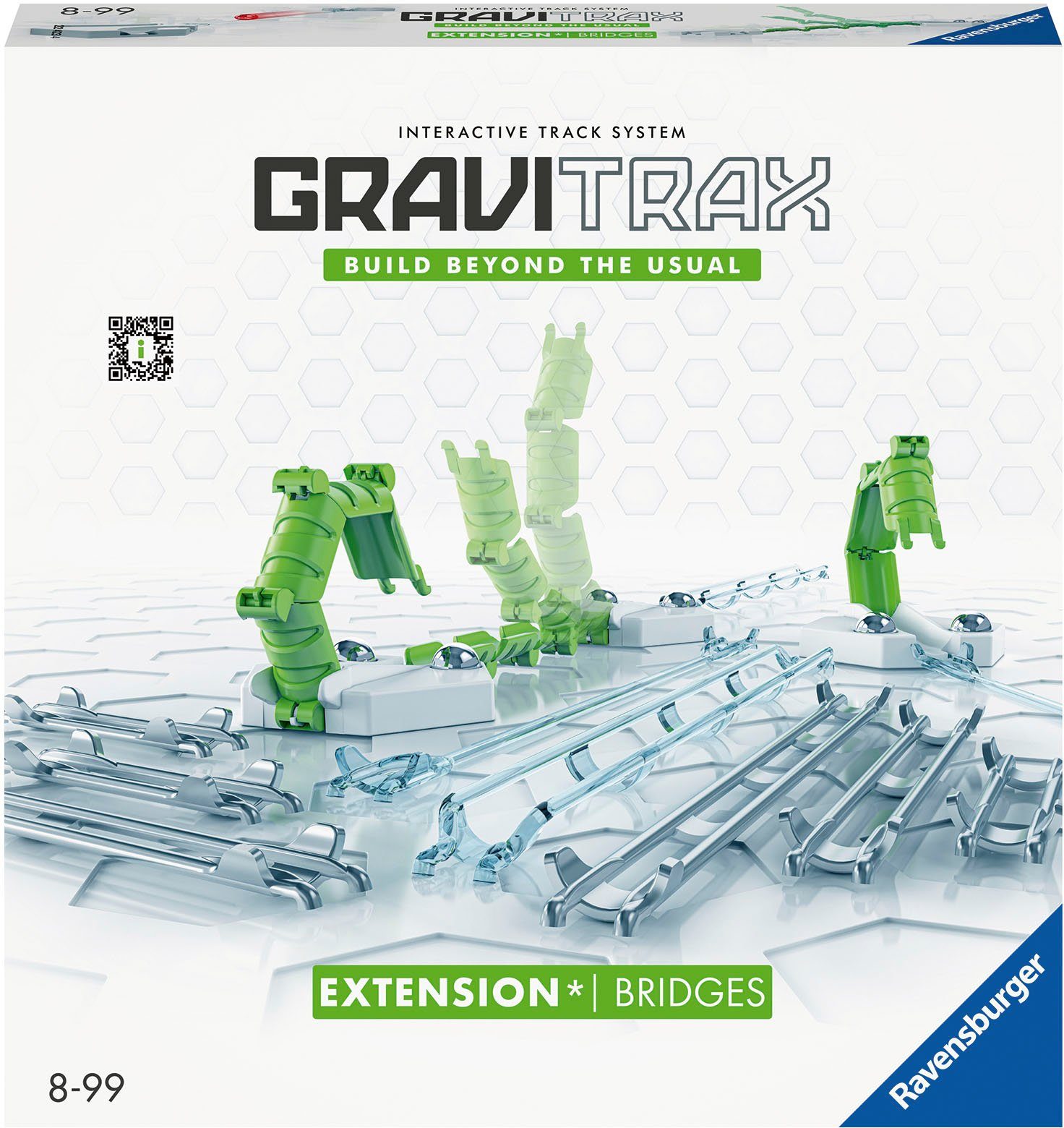 Die Extension Bridges bringt mehr Möglichkeiten und Spielspaß in die GraviTrax Bahn. Die Extension Bridges beinhaltet viele spannende Bauteile zum Vergrößern der Kugelbahn. Kombiniert mit einem beliebigen GraviTrax Starter-Set bringt die Extension Bridges noch mehr Möglichkeiten und Kugelspaß in das GraviTrax-Universum. Wieviel länger kann die Kugel mit den neuen Elementen rollen? GraviTrax ist ein flexibel erweiterbares, interaktives Kugelbahnsystem für Kinder ab 8 Jahren: Mit GraviTrax bauen Kinder, Jugendliche und Erwachsene nicht nur einfache Kugelbahnen. Sie erschaffen einzigartige Kugelbahnwelten. Durch das freie Konzipieren der Kugelbahnen und das Erforschen des Rollverhaltens der Kugeln wird das Verständnis für Wissenschaft geschärft und Schwerkraft hautnah erlebbar. Das GraviTrax Universum beinhaltet drei spannende Linien – CORE, PRO und POWER. Все GraviTrax Linien und Produkte können frei miteinander kombiniert werden. Durch unzählige Erweiterungen mit klassischen Bauelementen oder Steine, die besondere Action und Tricks ermöglichen, lässt sich das GraviTrax-Universum unendlich vergrößern. So kann jeder individuell tüfteln, ausprobieren und über sich hinausbauen.