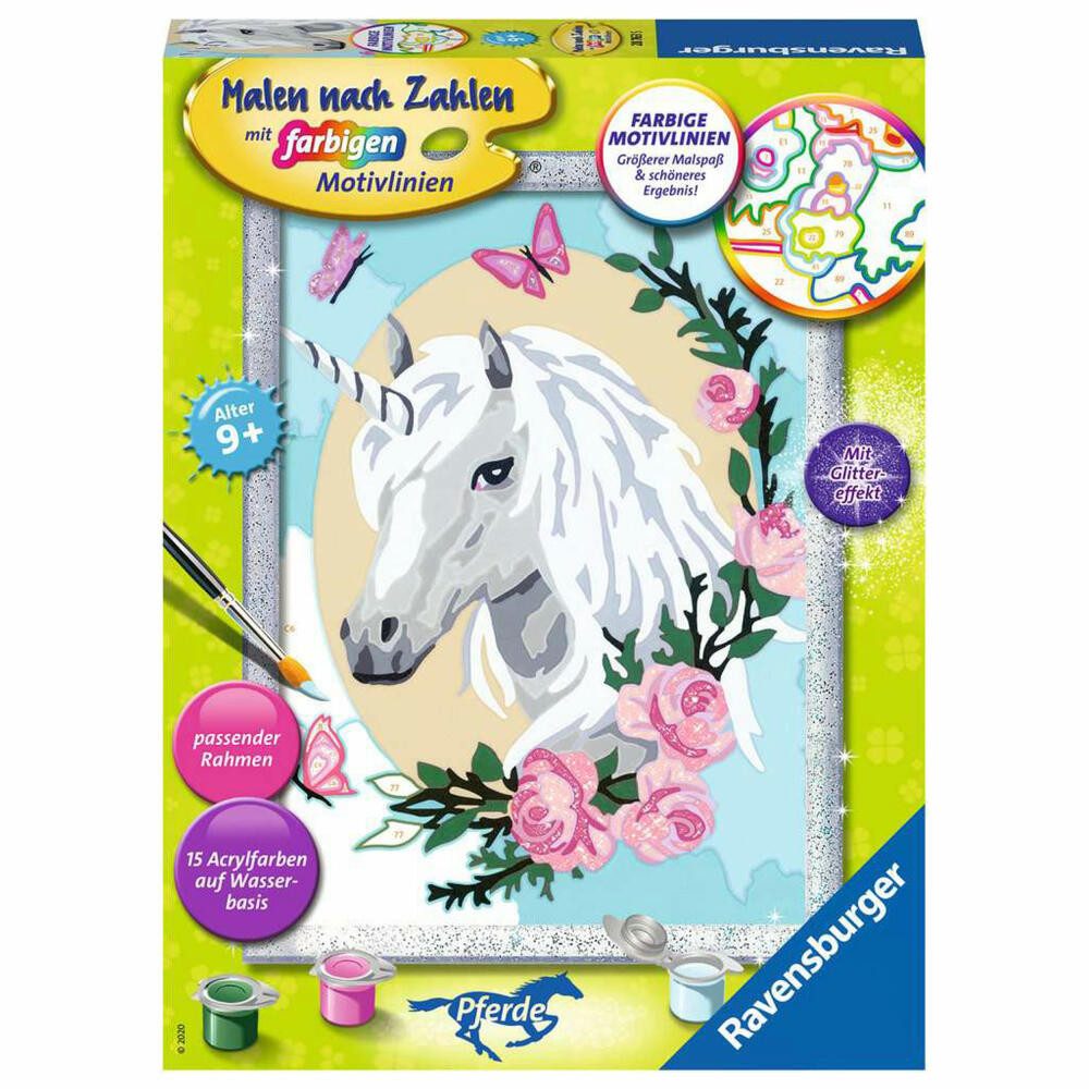 Farbige Motivlinien: Größerer Malspaß & ein schöneres Ergebnis!Dank der farbigen Motivlinien, können die Kinder das ganze Motiv Einhorntraum und die Farben schneller erkennen. Der Pinsel hat eine gute Führung und so entsteht nach und nach ein perfektes Bild.Die schönen Motive zum Ausmalen sind eine tolle Geschenkidee für Kinder ab 9 Jahren und eine schöne Dekoration für das Kinderzimmer. In diesem Malset sind bereits 15 fertig gemischte Acrylfarben enthalten.
