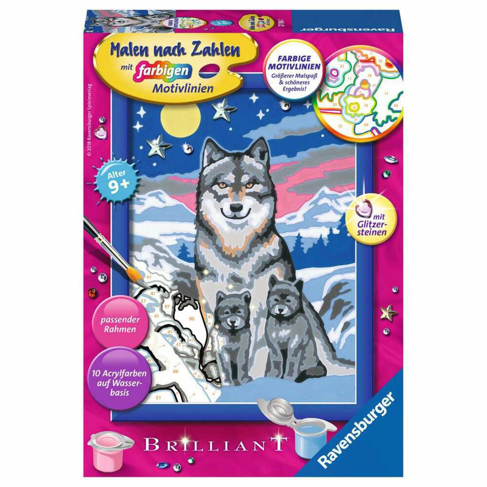 Farbige Motivlinien: Größerer Malspaß & ein schöneres Ergebnis!Dank der farbigen Motivlinien, können die Kinder das ganze Motiv Süße Wolfsfamilie und die Farben schneller erkennen. Der Pinsel hat eine gute Führung und so entsteht nach und nach ein perfektes Bild.Die schönen Motive zum Ausmalen sind eine tolle Geschenkidee für Kinder ab 9 Jahren und eine schöne Dekoration für das Kinderzimmer. In diesem Malset sind bereits 10 fertig gemischte Acrylfarben enthalten.