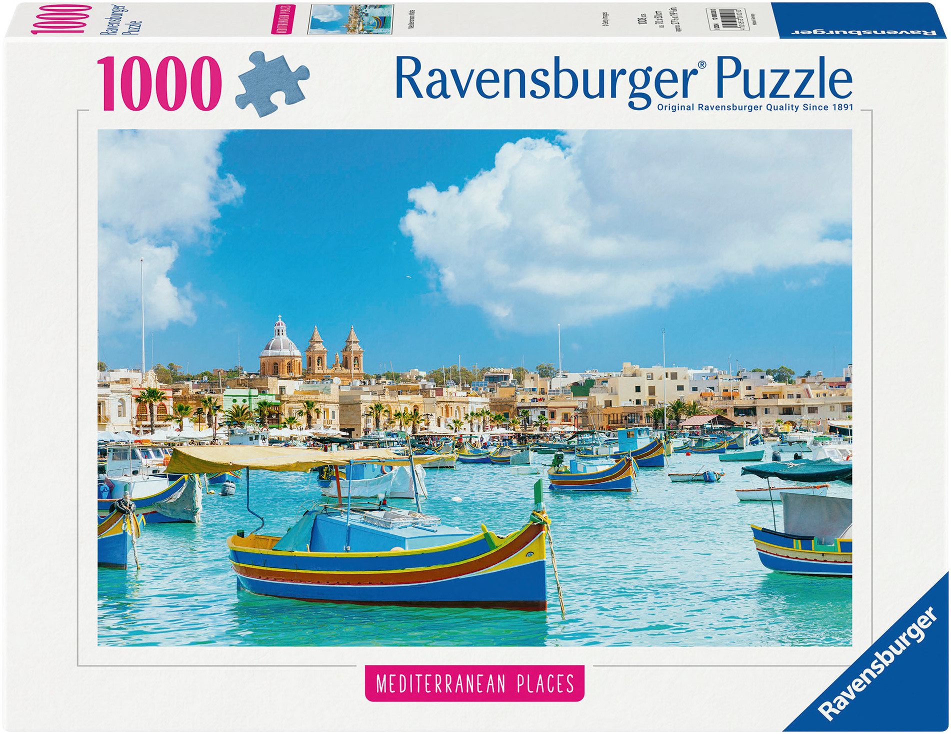 Wir entführen Sie in den Süden Europas, wo Sie Stück für Stück wunderschöne mediterrane Orte entdecken, die Lust auf Urlaub machen. Egal ob Italien, Frankreich, Malta, Kroatien, Griechenland oder Spanien: hier ist für jeden Urlauber das richtige Ziel dabei, bei welchem Sie sich in 1000 Teilen in die Ferne träumen können. Ravensburger Puzzles bedeutet Puzzlespaß in Premium Qualität. Für Anfänger, die sich bei einer kleinen Teilezahl wohlfühlen, für Fortgeschrittene Puzzler die eine mittlere Herausforderung bevorzugen und natürlich auch für die absoluten Profis, die vor 40.320 Teilen nicht zurückschrecken. Durch die enorme Motivvielfalt im Ravensburger Puzzle Programm steht einem unvergesslichen Puzzleerlebnis nichts mehr im Weg. Die Einzigartigkeit der charakteristischen Puzzleteile wird durch handgefertigte Stanzwerkzeuge erreicht, die in äußerster Uhrmacherpräzision im oberschwäbischen Ravensburg hergestellt werden. Jahrzehntelange Erfahrung in der Puzzleproduktion, den hohen Qualitätsanspruch an Material, Motiv und Design lassen die Herzen der Puzzler höherschlagen und lässt erleben, wie eins zum andern passt. Das ist die Ravensburger Leidenschaft für Qualität.