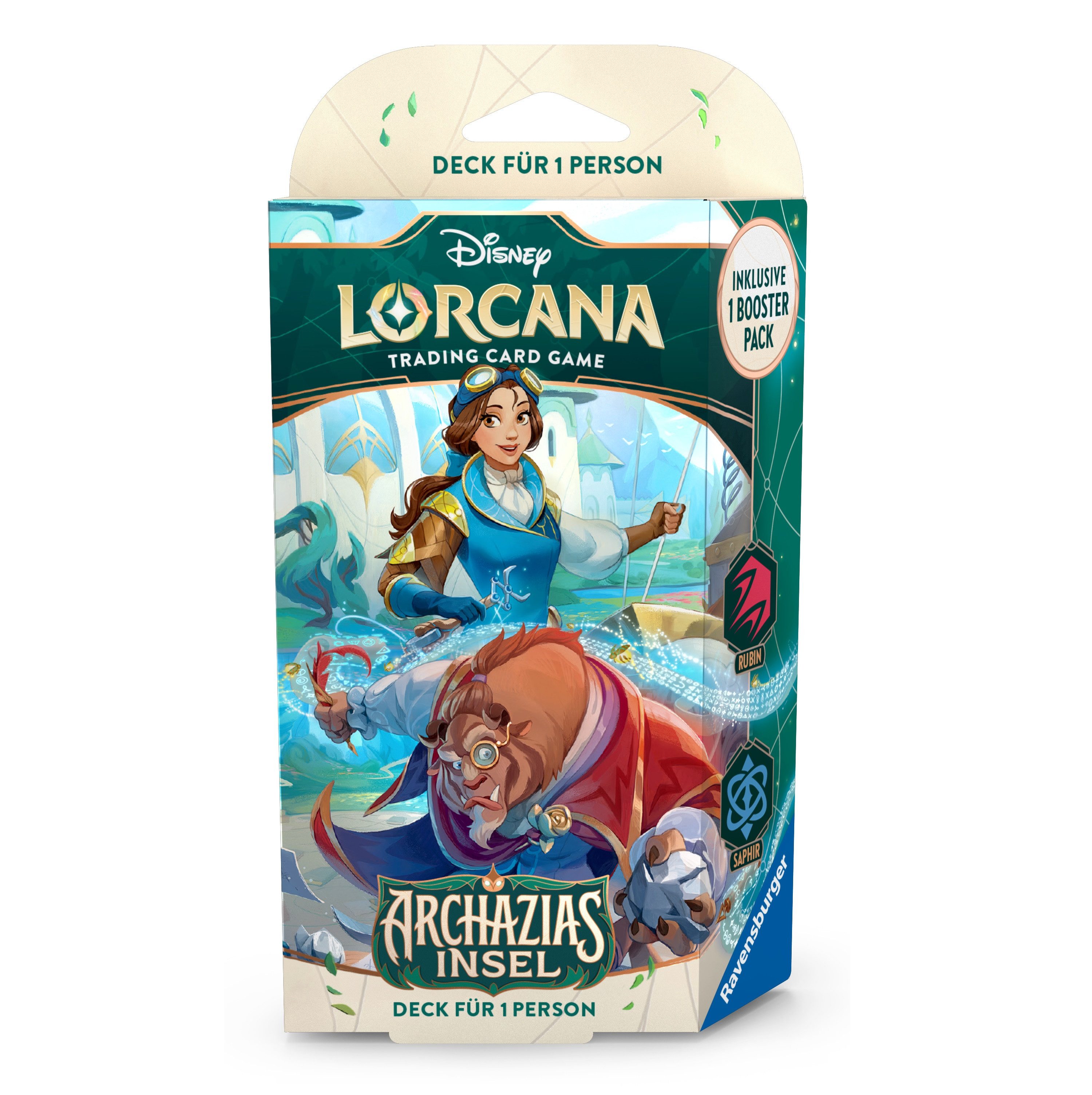 ⚔ **Starter Deck Saphir & Rubin – Archazias Insel (Deutsch)** Dieses spielfertige Deck kombiniert die clevere Ressourcennutzung der **Saphir-Tinte** mit der ungestümen Angriffskraft der **Rubin-Tinte**. Ein ideales Starter-Deck für Spieler:innen, die gerne taktisch denken und gleichzeitig offensiv spielen. Mit Karten aus dem Set *Archazias Insel* sowie der neuen **Ort-Mechanik** bietet dieses Deck alles, was du brauchst, um direkt loszulegen – inklusive Regelwerk und Token. Ein idealer Einstieg für Abenteurer:innen, die sich gerne behaupten! ♂