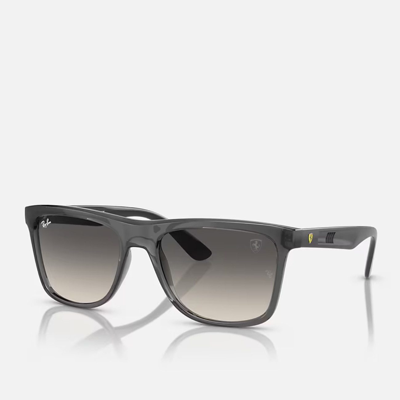 Die Ray-Ban RB4413M Scuderia Ferrari Collection ist ein Statement für alle, die Motorsport und Design vereinen möchten. Diese Sonnenbrille wurde für echte Fans der Scuderia Ferrari entwickelt und überzeugt durch eine moderne Kombination aus Funktionalität und Racing-inspirierter Ästhetik. Die kantige, eckige Form in glänzendem Grau transparent sorgt für einen futuristischen Look, während die Verlaufsgläser in Grau idealen Blendschutz bei wechselnden Lichtverhältnissen bieten. Abgerundet wird das Design durch das ikonische Ferrari-Branding auf den Bügeln – perfekt für jeden Auftritt auf der Straße oder der Tribüne.