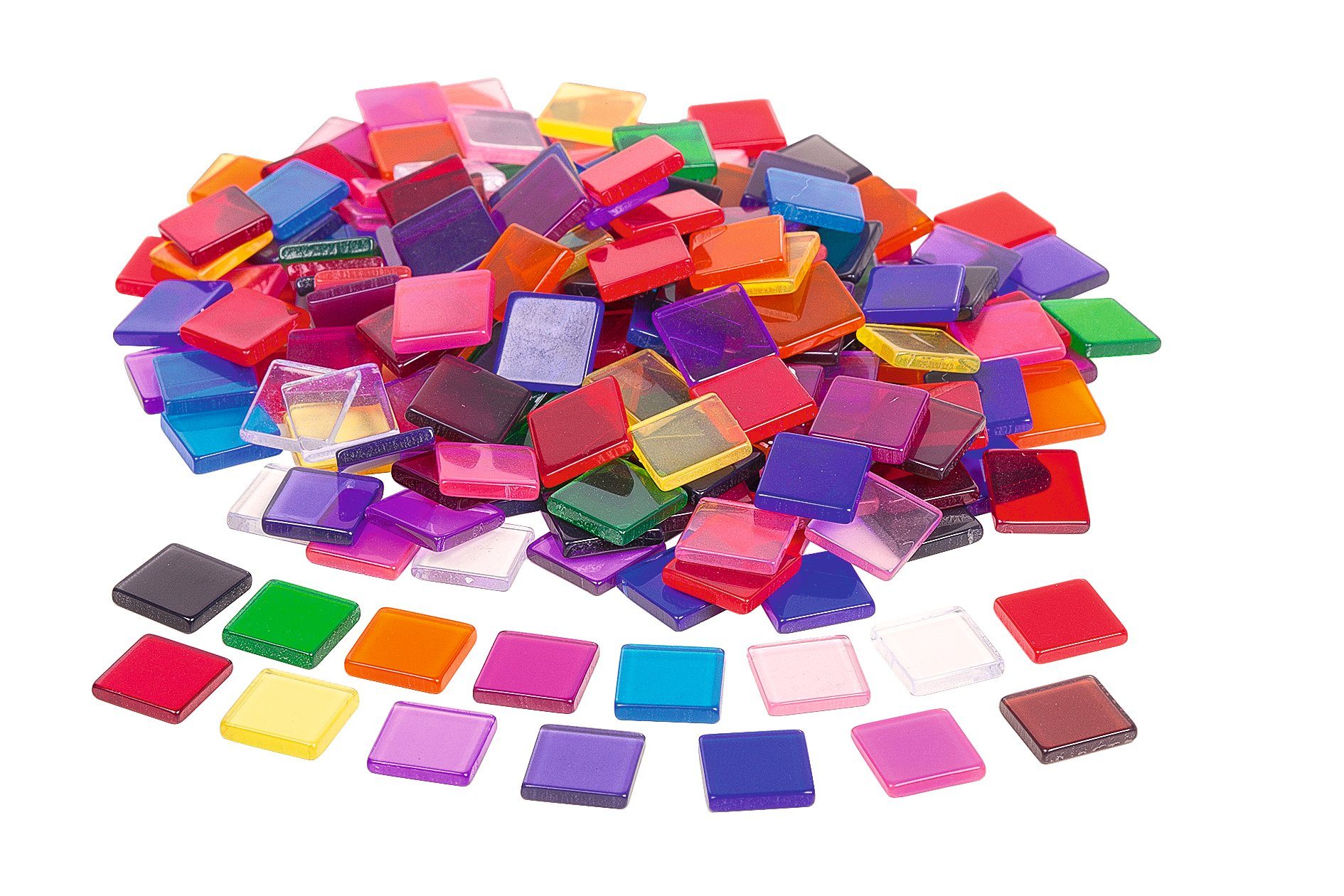 Die Acryl-Mosaik-Steinchen sind verwendbar auf fast allen Untergründen wie, z.B. Metall, Holz, Pappmaché, Glas und Styropor. In einer Packung befinden sich ca. 205 Stk. Maße: 1 x 1 cm.