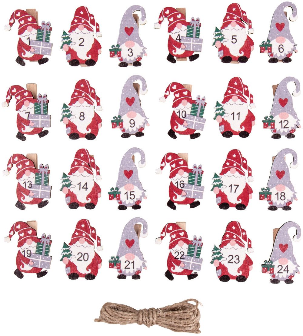 Die Adventszahlen 'Weihnachtswichtel Santa' auf Holzklammer sind perfekt, um deinen Adventskalender individuell zu gestalten. Mit 24 charmanten Zahlen aus Pappel- und Birkenholz bringen sie weihnachtlichen Zauber in dein Zuhause. Jede Zahl ist einseitig dekoriert und misst zwischen 4 und 4,3 cm. Die praktische Holzklammer auf der Rückseite ermöglicht dir ein einfaches Befestigen. Im Set enthalten ist zudem eine 2 m lange Schnur, die dir Flexibilität bei der Gestaltung bietet. Diese Adventszahlen sind ideal, wenn du einen Last-Minute-Adventskalender kreieren möchtest. Lass deiner Kreativität freien Lauf und verleihe deinem Adventskalender einen persönlichen Touch!