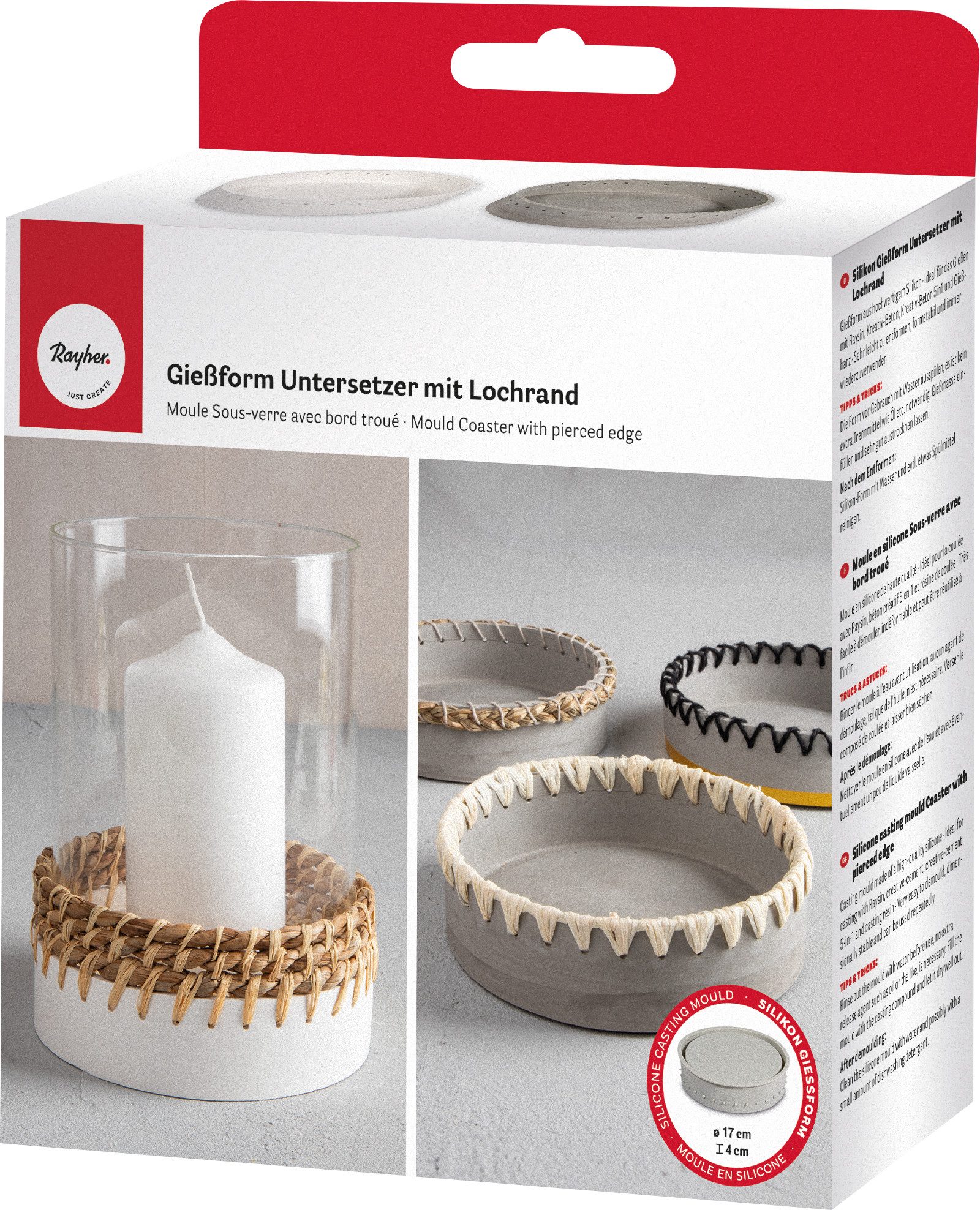 Die Silikon-Gießform 'Untersetzer mit Lochrand' eröffnet dir kreative Möglichkeiten. Mit einem Außen-Ø von 15 cm und einer Höhe von 4 cm ist sie ideal für Beton, Kreativgießmasse und Gießharz. Nach dem Auslösen kannst du den Gießling individuell mit Farben, Pasten oder Sprays gestalten. Der dekorative Lochrand bietet dir die Möglichkeit, Kordeln, Schnüre, Bast oder Draht kreativ zu integrieren. Die Gießform besteht aus Silikon und ist in zwei Teilen erhältlich. Perfekt für deinen nächsten DIY-Projekt!