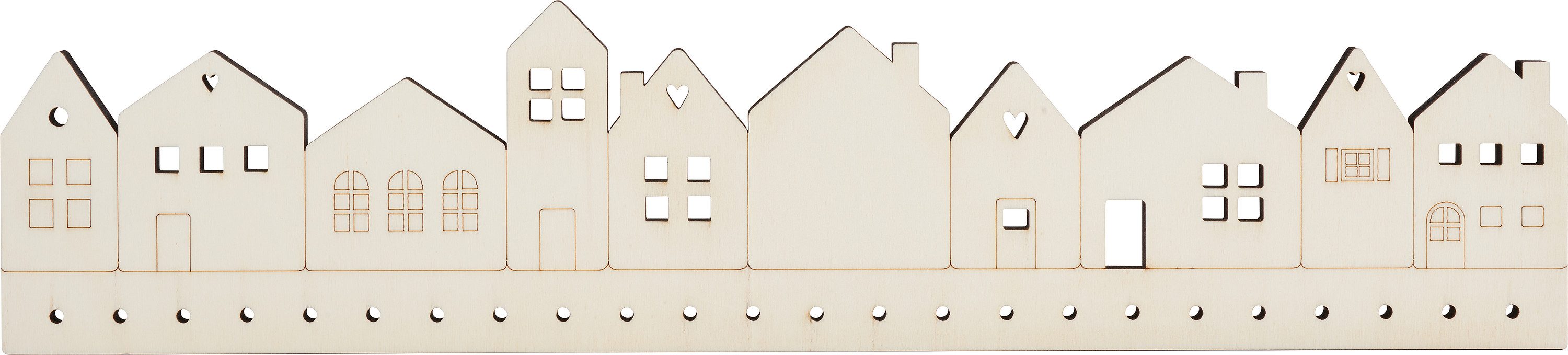 Die Adventszeit naht und du willst deinen Liebsten eine besondere Freude bereiten? Dann ist das Adventskalenderboard 'Häuserfronten' genau das Richtige für dich! Die ausgearbeiteten Häusermotive mit schönen braunen Rändern sind ein echter Blickfang und ein toller Begleiter in der Vorweihnachtszeit. Das Board bietet Platz für 24 Päckchen und kann mit Jutesäckchen und Zahlen (nicht enthalten) individuell gestaltet werden. Aber auch als Schlüsselbrett oder Garderobe im Kinderzimmer macht es eine gute Figur. Mit einer Höhe von 10 cm und einer Длина von 44,4 cm passt es in jede Wohnung. Gestalte es ganz nach deinen Wünschen mit Bastelfarben, Effektfarben, Servietten oder Motivstrohseide.