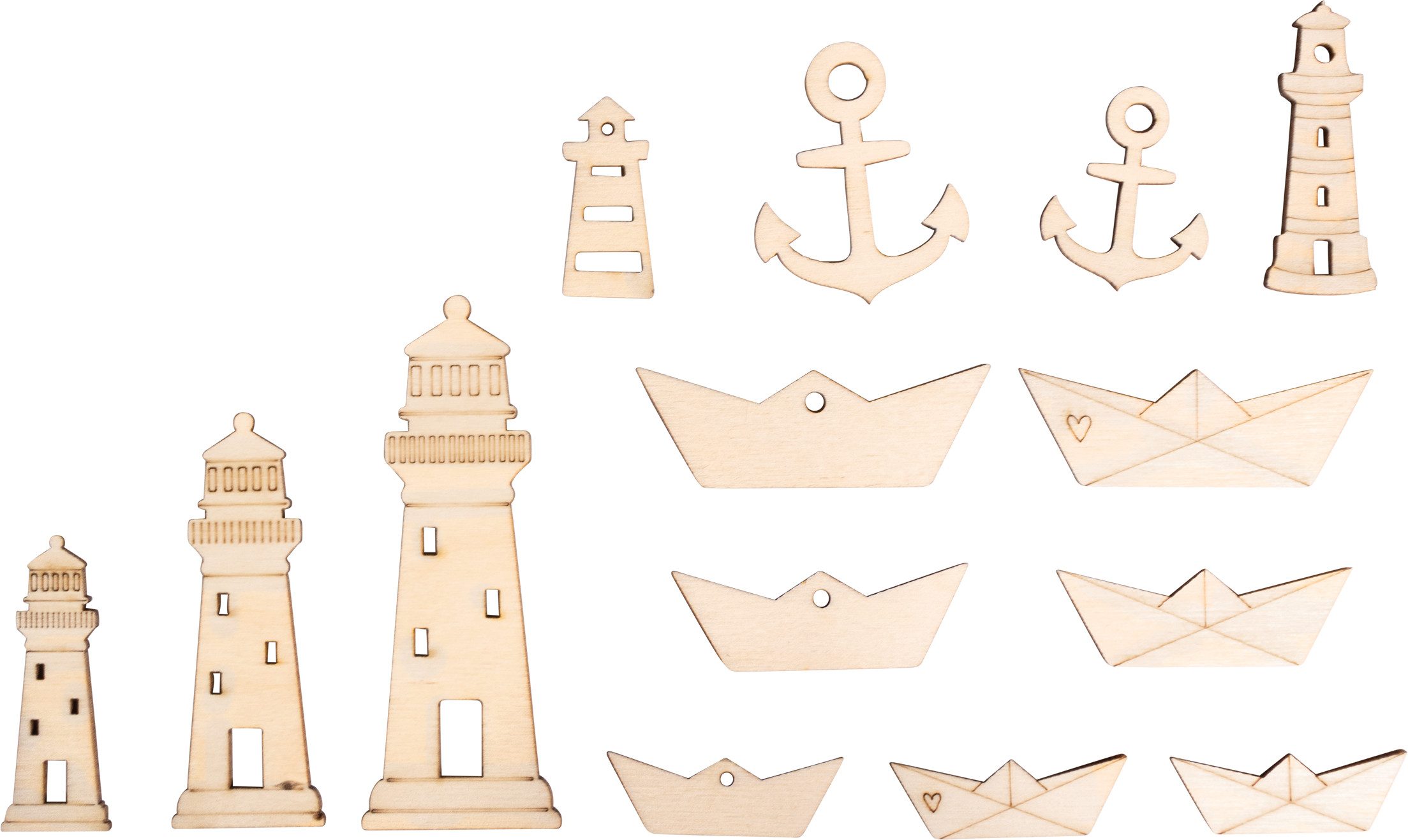 Die Holz Streuteile 'Leuchtturm & Co' schaffen ein maritimes Flair für dein Zuhause oder deine Feier. Die 14 detailreichen Sperrholzfiguren, von Leuchttürmen bis hin zu charmanten Booten und Ankern, bieten vielseitige Dekorationsmöglichkeiten von 1,5 bis 9 cm Größe. Verschönere mit diesen Streuteilen Karten, Geschenke oder floristische Arrangements. Dank ihrer Stärke von 3 mm sind sie robust und langlebig. Die sommerlichen Motive entführen dich gedanklich ans Meer und eignen sich ideal für Partys, Hochzeiten oder dein persönliches DIY-Projekt. Lass dich inspirieren und bringe ein Stück Urlaub in deinen Alltag.