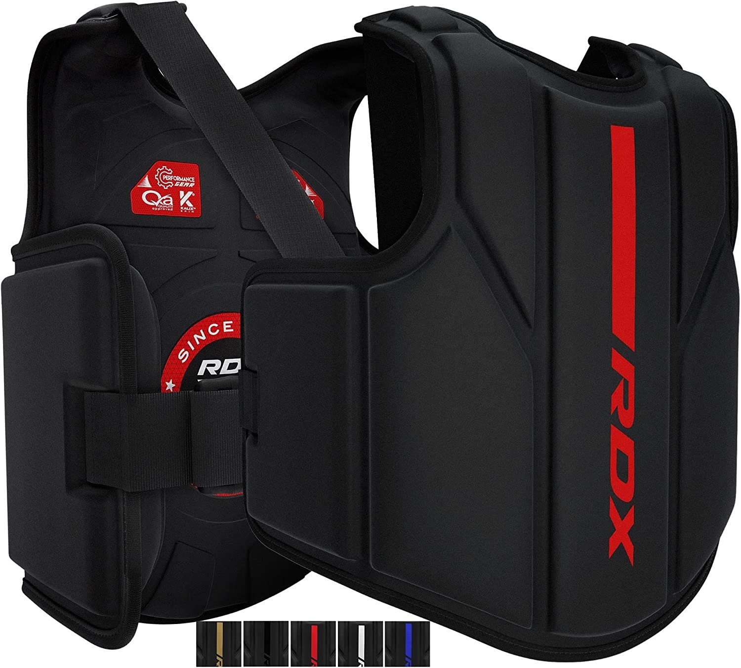 Mit dem RDX Brustschutz bist du ein Riese im Angesicht der Schläge und kannst dich den Schlägen stellen, die auf dich zukommen. Das große, aber ideal passende Design des Brustschutzes deckt den gesamten Oberkörper ab und bietet vollständigen Schutz vor direkten Schlägen. Mit dem RDX Brustschutzkannst du trainieren, während du härtere Schläge einsteckst und deine Taktik im Ring verbesserst.