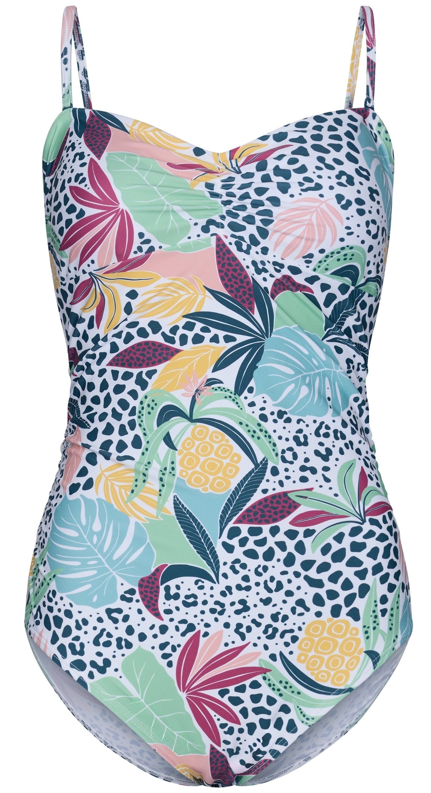 Dieser Rebelle Damen Bandeau Badeanzug mit abnehmbaren und verstellbaren Trägern, hergestellt aus 82% Polyamid und 18% Elastan. Dieser Badeanzug ist ideal für sonnige Tage am Strand oder am Pool. Das Bandeau-Design bietet eine elegante und moderne Ästhetik, während die abnehmbaren Träger vielseitige Tragemöglichkeiten ermöglichen – entweder als Bandeau oder mit Trägern für zusätzlichen Halt. Die verstellbaren Träger sorgen für eine individuelle Passform und Komfort. Mit Softcups ausgestattet, bietet der Badeanzug eine leichte Unterstützung und Formgebung für ein angenehmes Tragegefühl den ganzen Tag über. Das Material aus Polyamid und Elastan ist bekannt für seine Elastizität und Schnelltrocknungseigenschaften, ideal für Aktivitäten im Wasser. Die Konstruktion betont die weibliche Silhouette und bietet gleichzeitig Bewegungsfreiheit und Komfort beim Schwimmen oder Sonnenbaden. In Bezug auf Stil ist dieser Badeanzug vielseitig einsetzbar, ob am Strand, im Spa oder während eines Urlaubs. Er kombiniert Funktionalität mit einem zeitlosen Design, das sowohl trendig als auch praktisch ist.