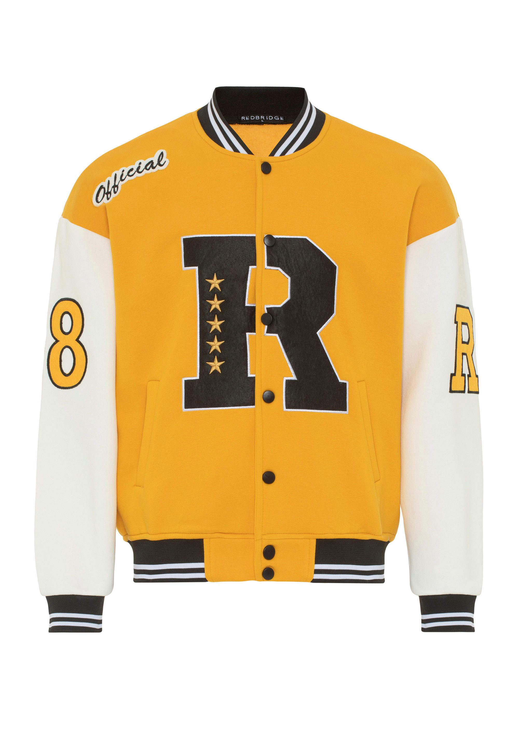 Steigern Sie Ihren Stil mit der Red Bridge Herren Sweatjacke 'Big R', die traditionelle Collegejacken-Elemente mit modernen Details kombiniert. Diese Jacke ist für den modebewussten Mann entworfen, der Wert auf Qualität, Komfort und Stil legt.