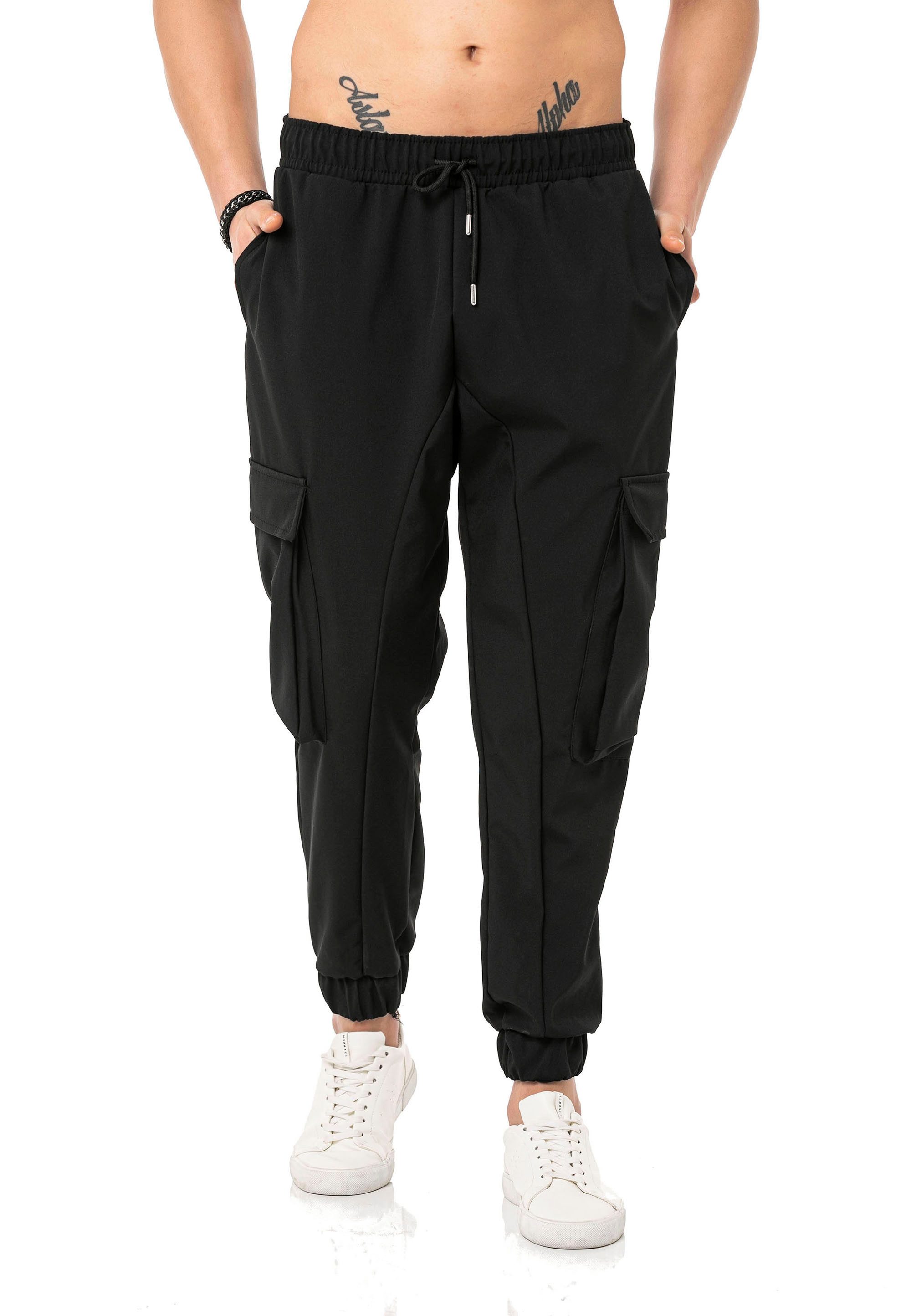 Diese schwarze Cargohose kombiniert zeitloses Design mit Funktionalität und Komfort. Ausgestattet mit großzügigen Seitentaschen, bietet sie ausreichend Stauraum für kleine Gegenstände, während der elastische Bund mit Kordelzug eine optimale Passform garantiert. Die schlichte schwarze Farbgebung macht die Hose zu einem vielseitigen Basic, das in keinem Kleiderschrank fehlen darf. Ob für entspannte Freizeitaktivitäten, sportliche Unternehmungen oder lässige Alltagslooks – diese Hose passt sich Ihrem Lifestyle an. Die schmal zulaufenden Beine und der elastische Saum sorgen für einen modernen, sportlichen Look, der bequem und stylish zugleich ist. Gefertigt aus hochwertigem, strapazierfähigem Material, überzeugt die Hose durch ihre Langlebigkeit und einfache Pflege. Kombinieren Sie sie mit einem Hoodie und Sneakern für einen urbanen Stil oder mit einem schlichten T-Shirt für den ultimativen Casual-Look.