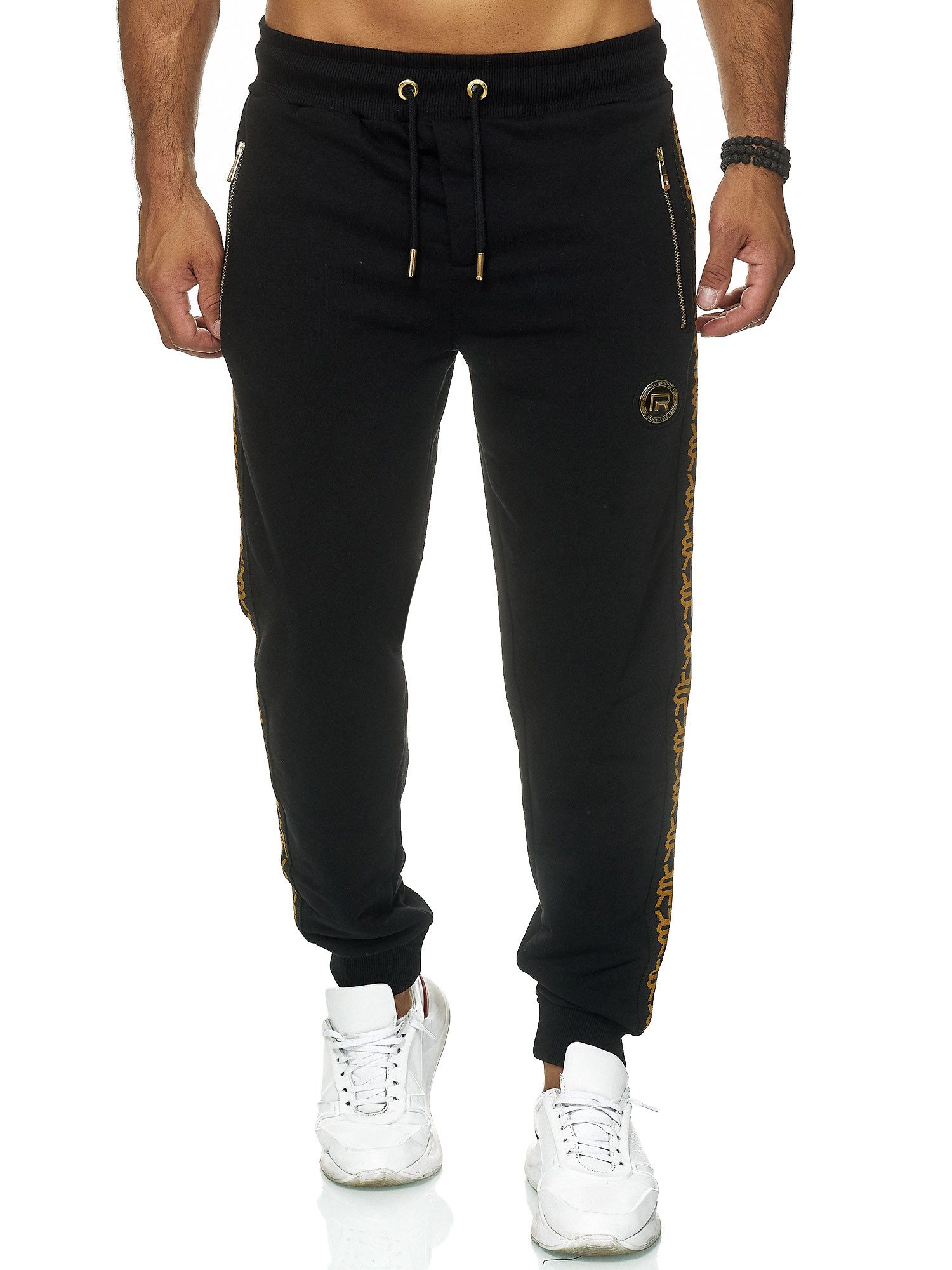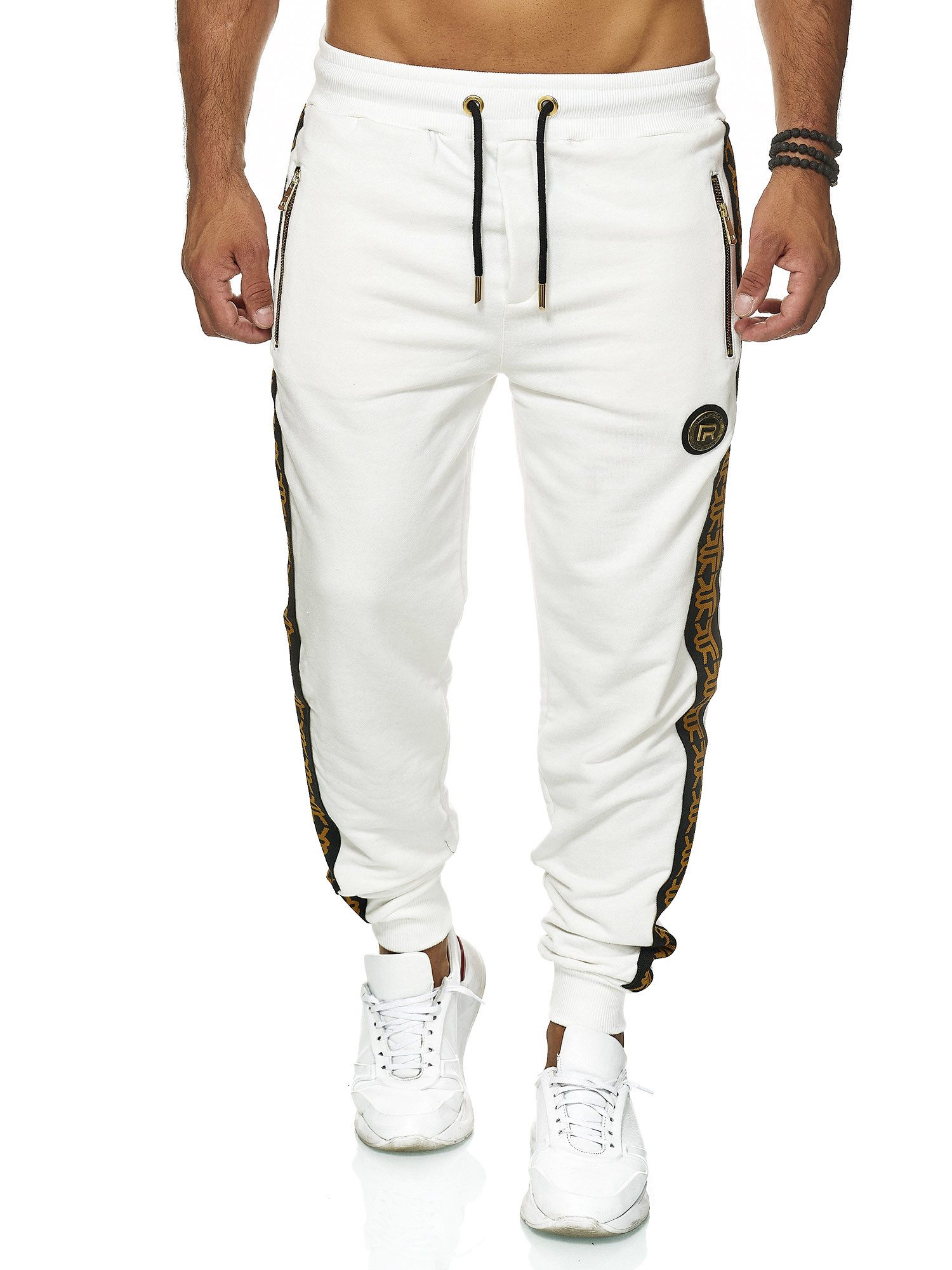 Diese Jogginghose vereint sportliche Funktionalität mit stilvollen Details und ist der ideale Begleiter für aktive Tage oder entspannte Freizeitmomente. Goldene Akzente, wie die Reißverschlüsse und Kordelenden, setzen elegante Highlights, während der seitliche Musterstreifen für einen dynamischen, modernen Look sorgt. Gefertigt aus weichem und atmungsaktivem Material, garantiert die Hose hohen Tragekomfort und Bewegungsfreiheit – ideal für Workouts, Spaziergänge oder einfach zum Entspannen. Die praktischen Reißverschlusstaschen bieten genügend Platz für kleine Gegenstände und sichern diese zuverlässig. Dank ihres vielseitigen Designs lässt sich die Jogginghose mühelos mit Hoodies, T-Shirts oder sportlichen Sneakers kombinieren. Ein Must-have für alle, die Wert auf Stil und Komfort legen!