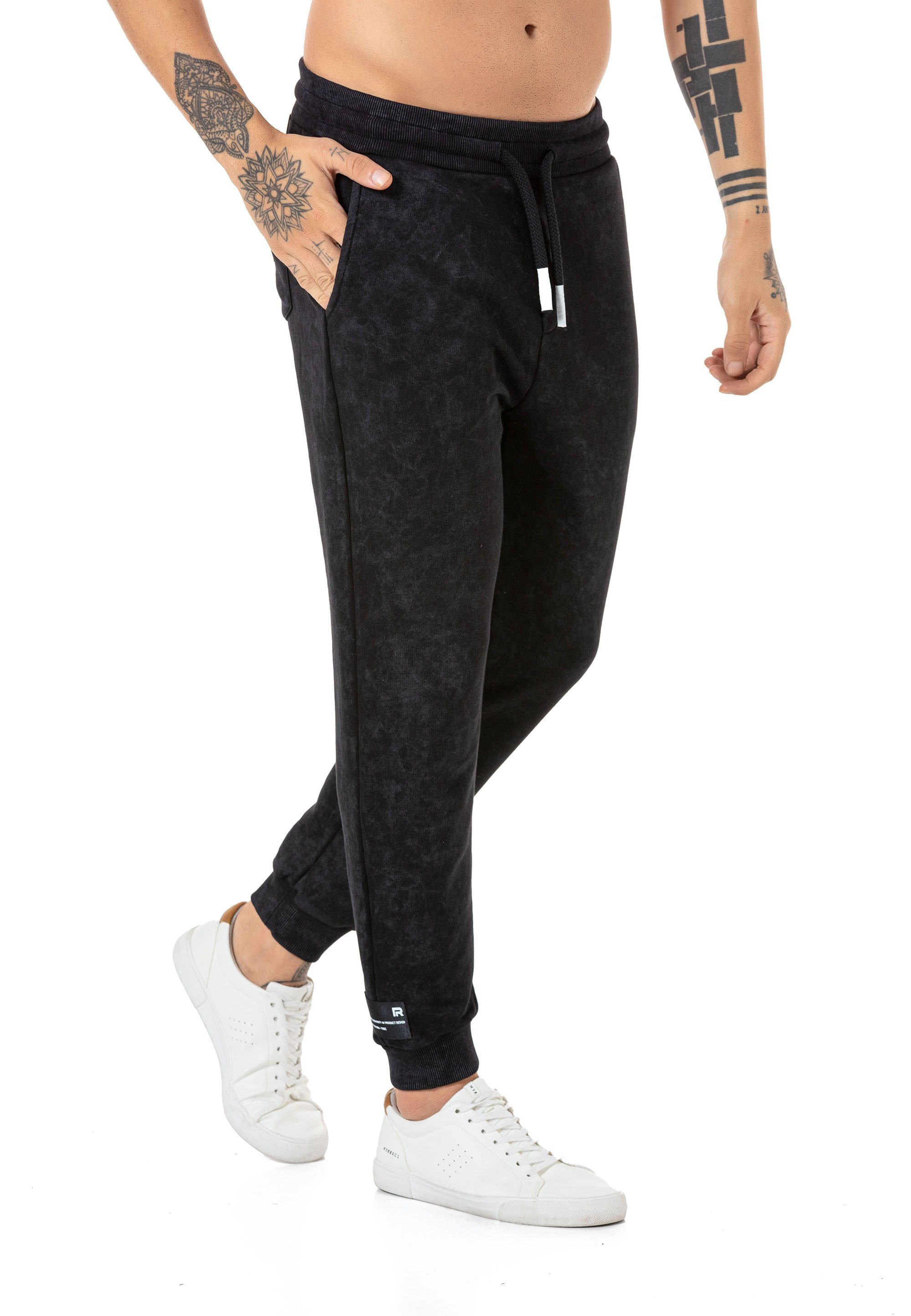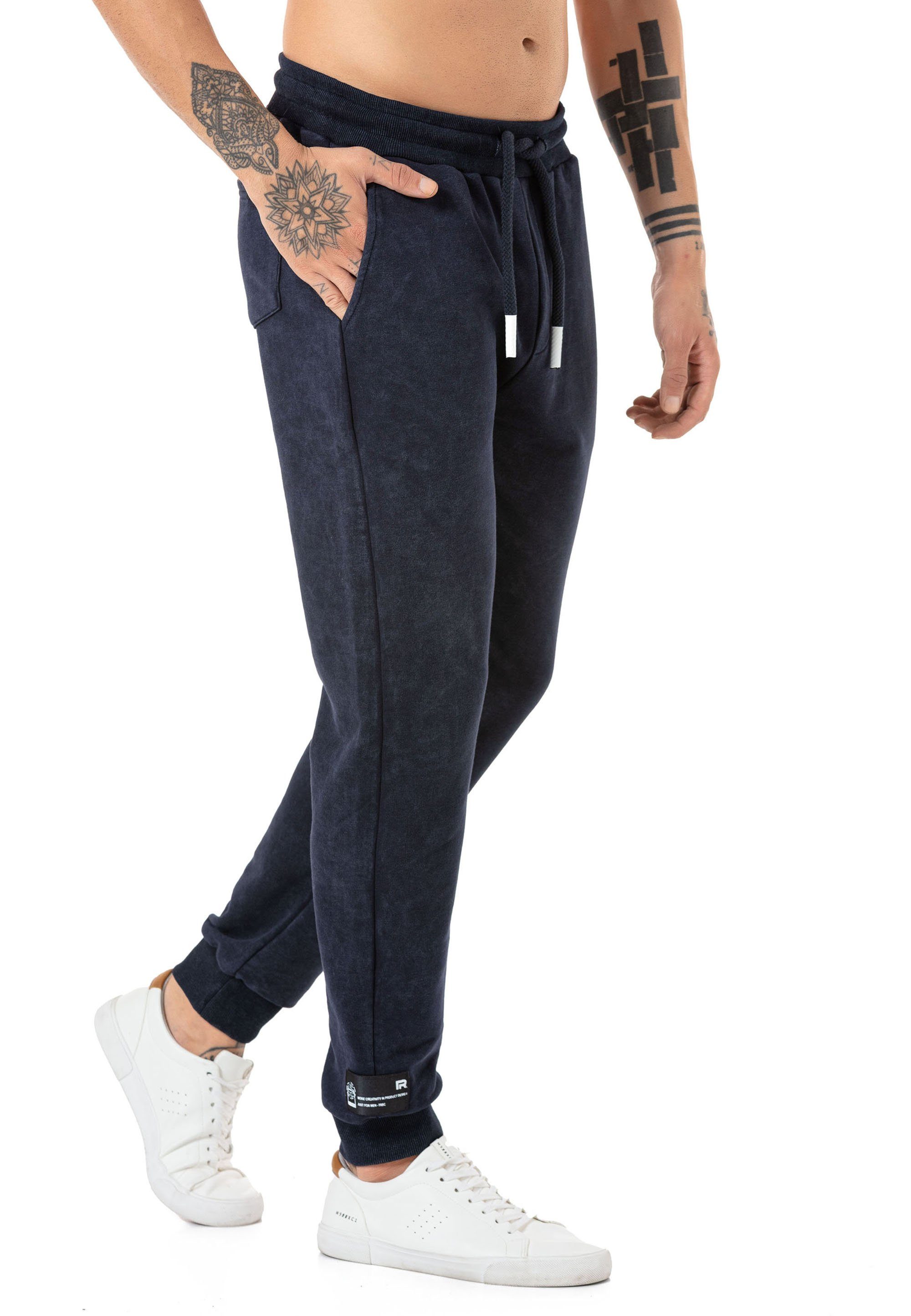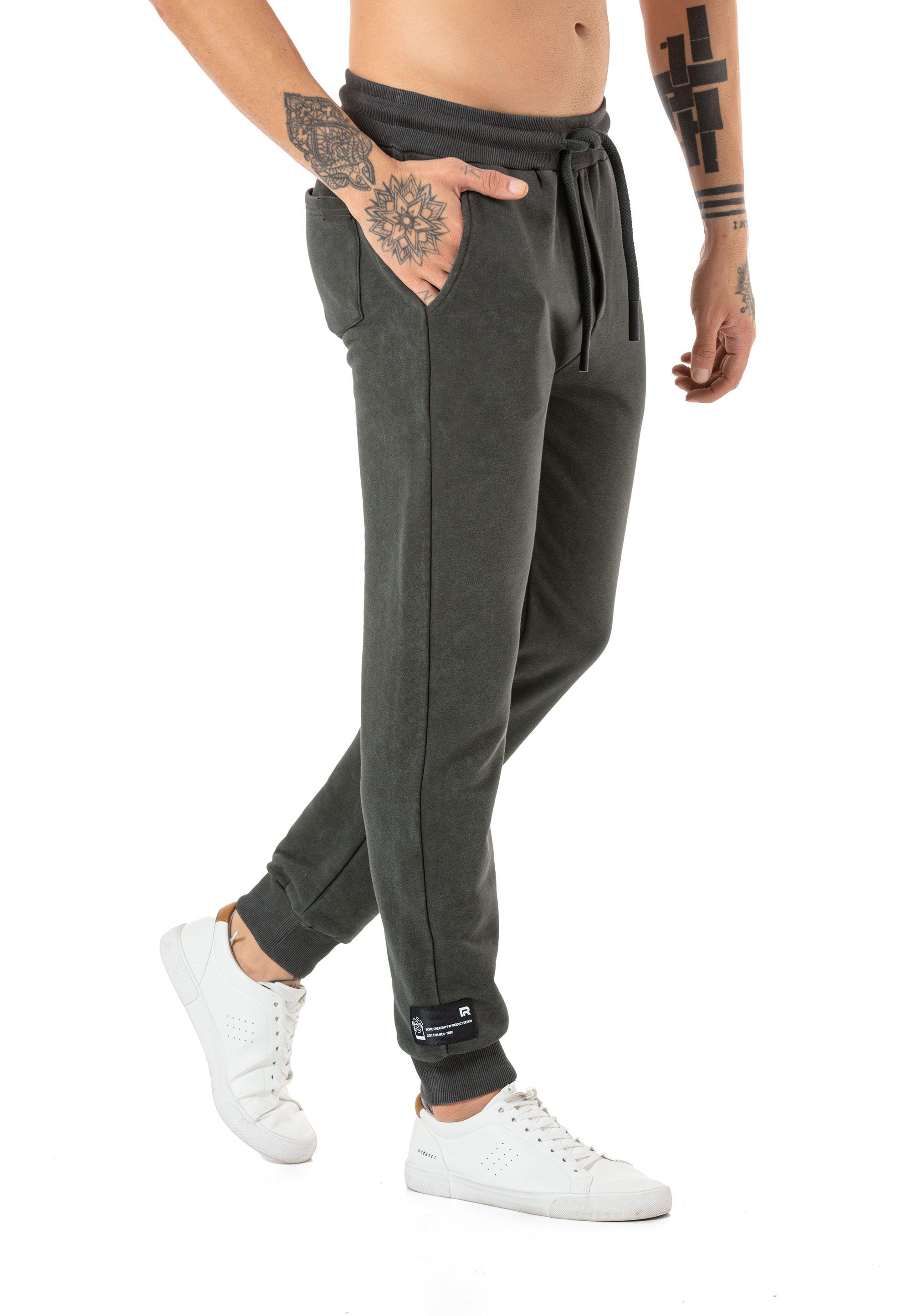 Diese Herren Jogginghose vereint höchsten Komfort mit modernem Design und ist ideal für entspannte Tage oder stylische Streetwear-Looks. Das hochwertige Sweatmaterial fühlt sich angenehm weich auf der Haut an und sorgt für ein bequemes Tragegefühl den ganzen Tag über. Dank der angesagten Waschung hebt sich diese Jogginghose optisch von klassischen Modellen ab und verleiht jedem Outfit eine besondere Note. Der elastische Bund mit verstellbarem Kordelzug sorgt für eine individuelle Passform, während die schmale Silhouette mit gerippten Beinabschlüssen für einen sportlichen Look sorgt. Ob für den Alltag, zum Relaxen oder für einen modischen Streetstyle – diese Sweatpants lassen sich vielseitig kombinieren und passen perfekt zu Sneakern, Hoodies oder schlichten T-Shirts. Ein Must-Have für Männer, die Wert auf Stil und Bequemlichkeit legen.