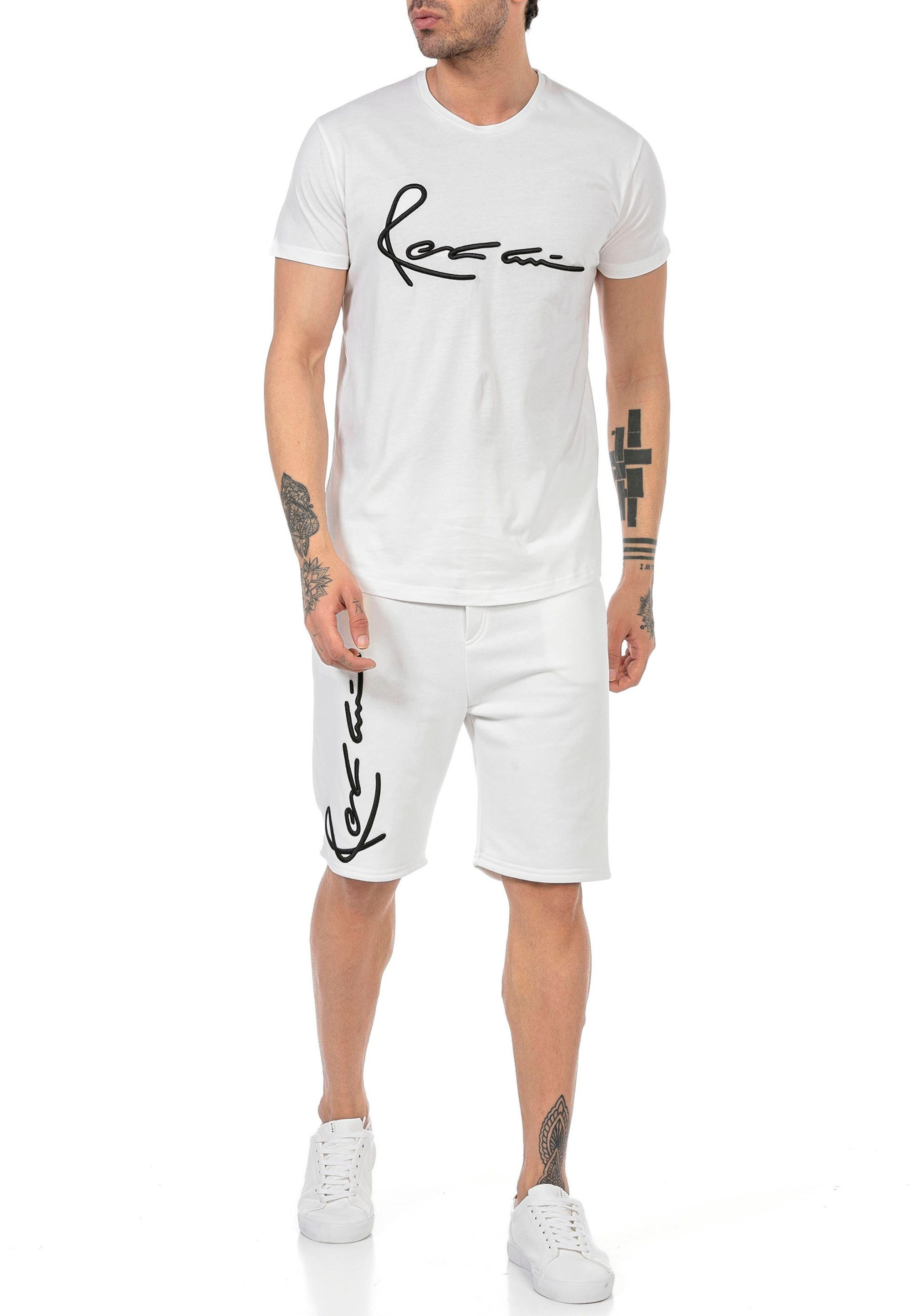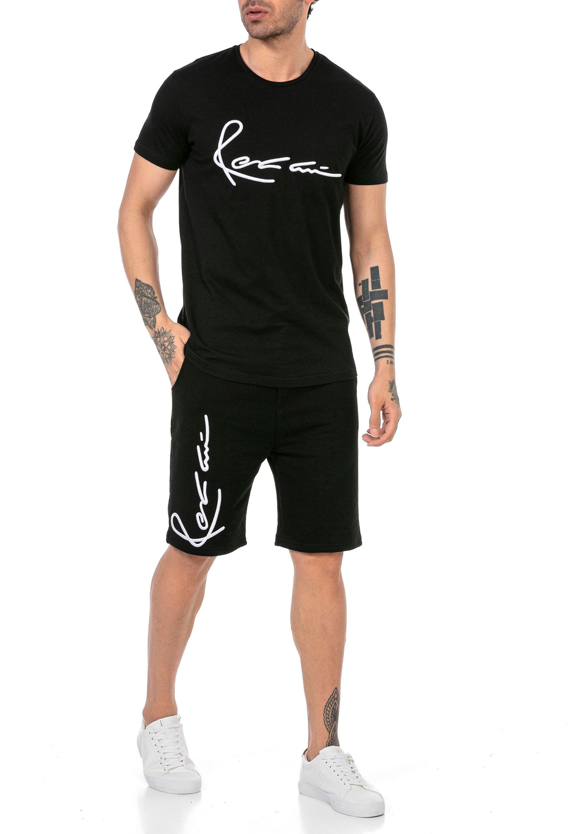 Erleben Sie den ultimativen Tragekomfort und stilvollen Streetwear-Style mit dem Red Bridge Herren Jogger Set. Dieses Zweiteiler-Set besteht aus kurzen Sweat Pants und einem passenden T-Shirt mit Logo-Stickereien auf der Brust und am Bein. Ideal für sportliche Aktivitäten und entspannte Freizeitmomente im Frühling, Sommer, Herbst oder Winter.