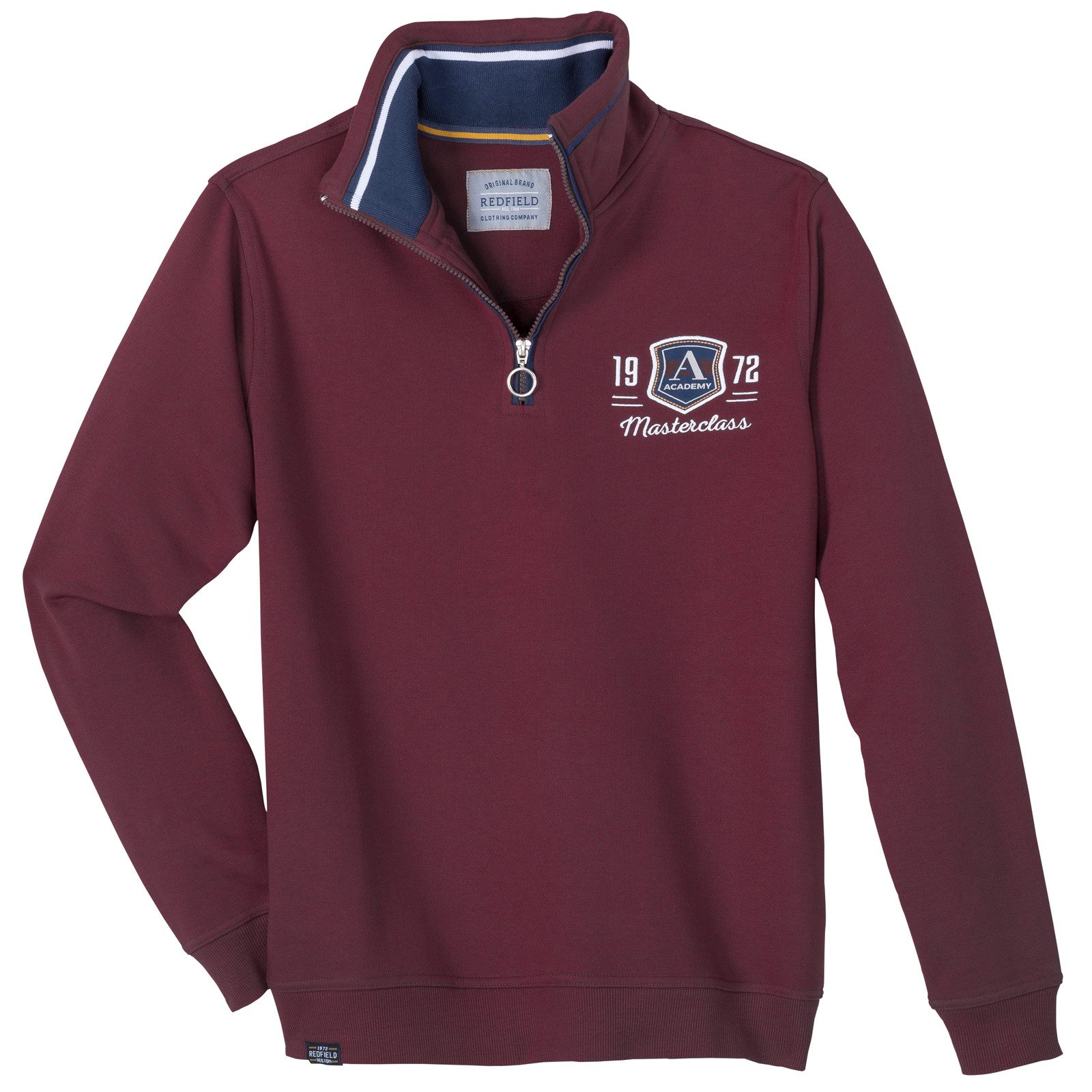 Optisch überzeugt das Sweatshirt in einem modernen Bordeauxton mit sportiven Details: Auf der Brust befindet sich eine hochwertige Stickerei mit Academy-Emblem und Schriftzug „Masterclass“, die dem Pullover eine dynamische Note verleiht. Der hochschließende Troyerkragen mit kurzem Reißverschluss rundet den sportiven Charakter ab und ermöglicht flexible Tragevarianten.