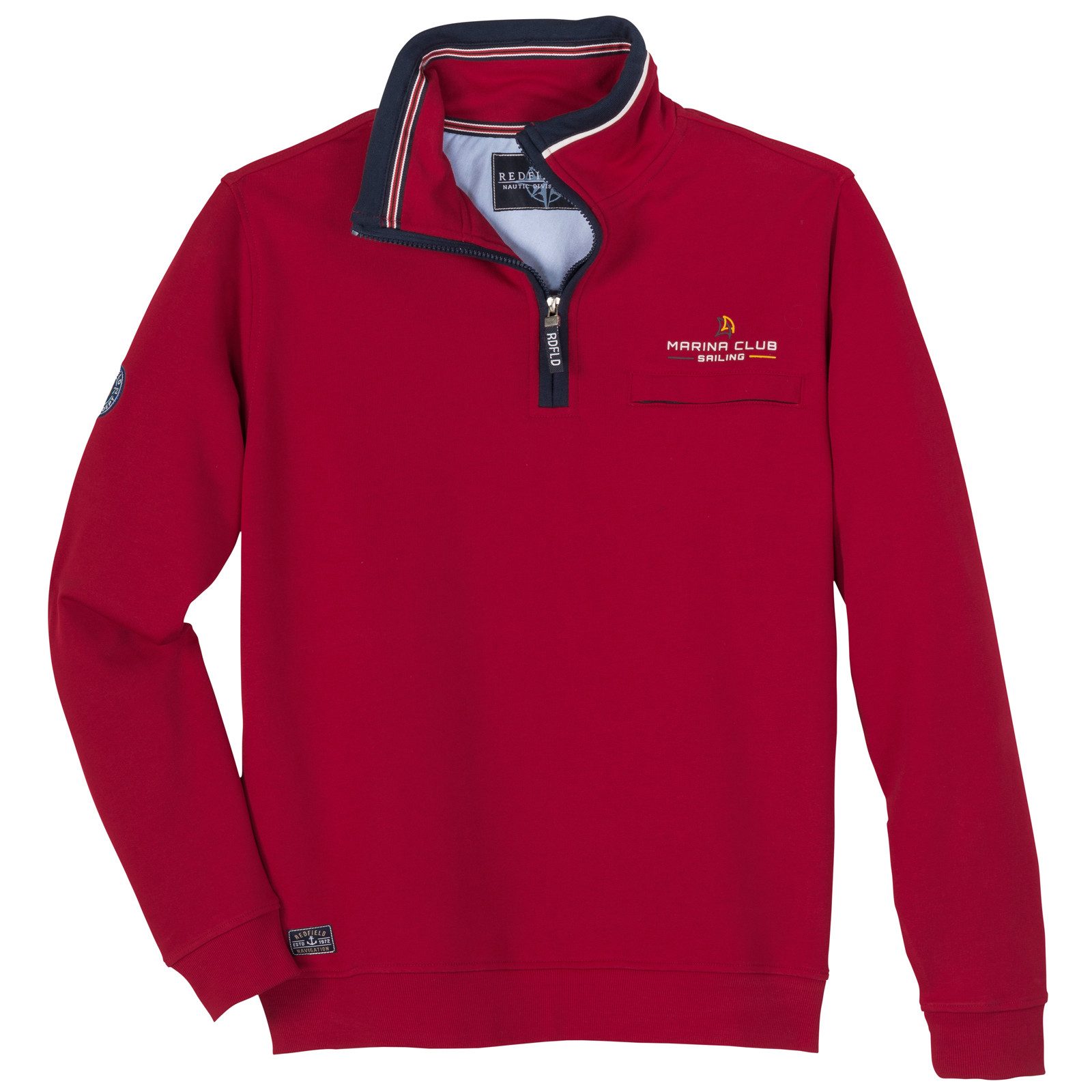 Ein sportives Redfield Sweatshirt in Herren Übergrößen, das maritimen Lifestyle mit funktionalen Details verbindet – perfekt für Freizeit, Club-Feeling und lässige Outfits