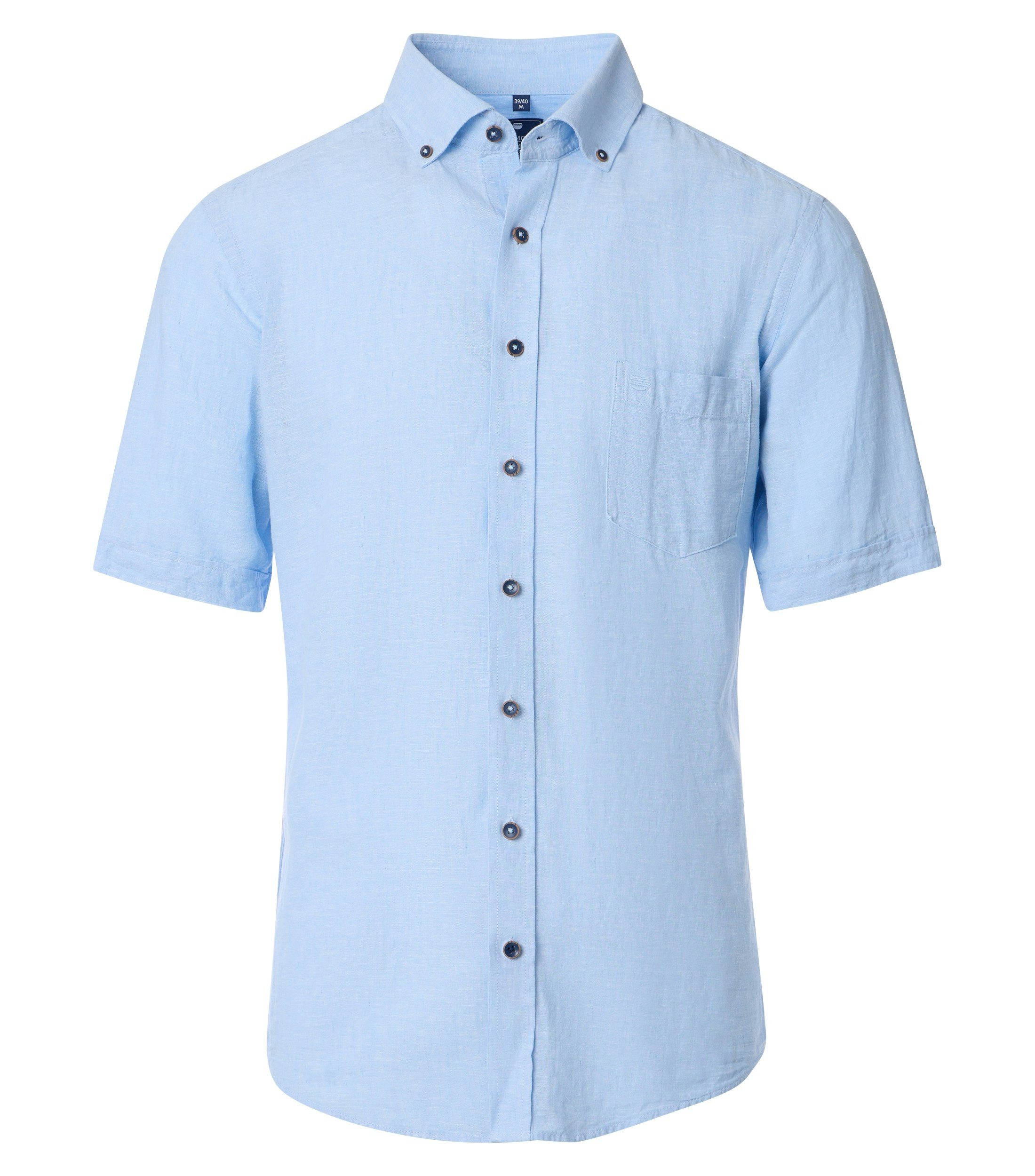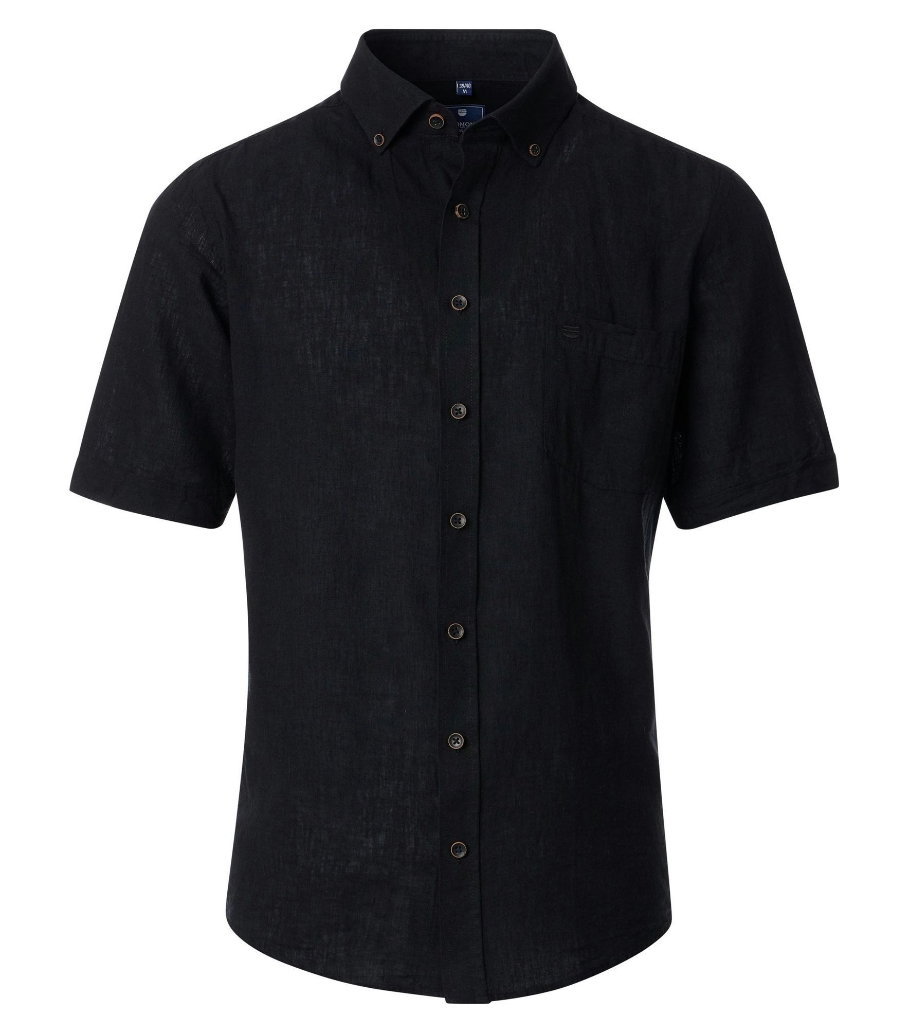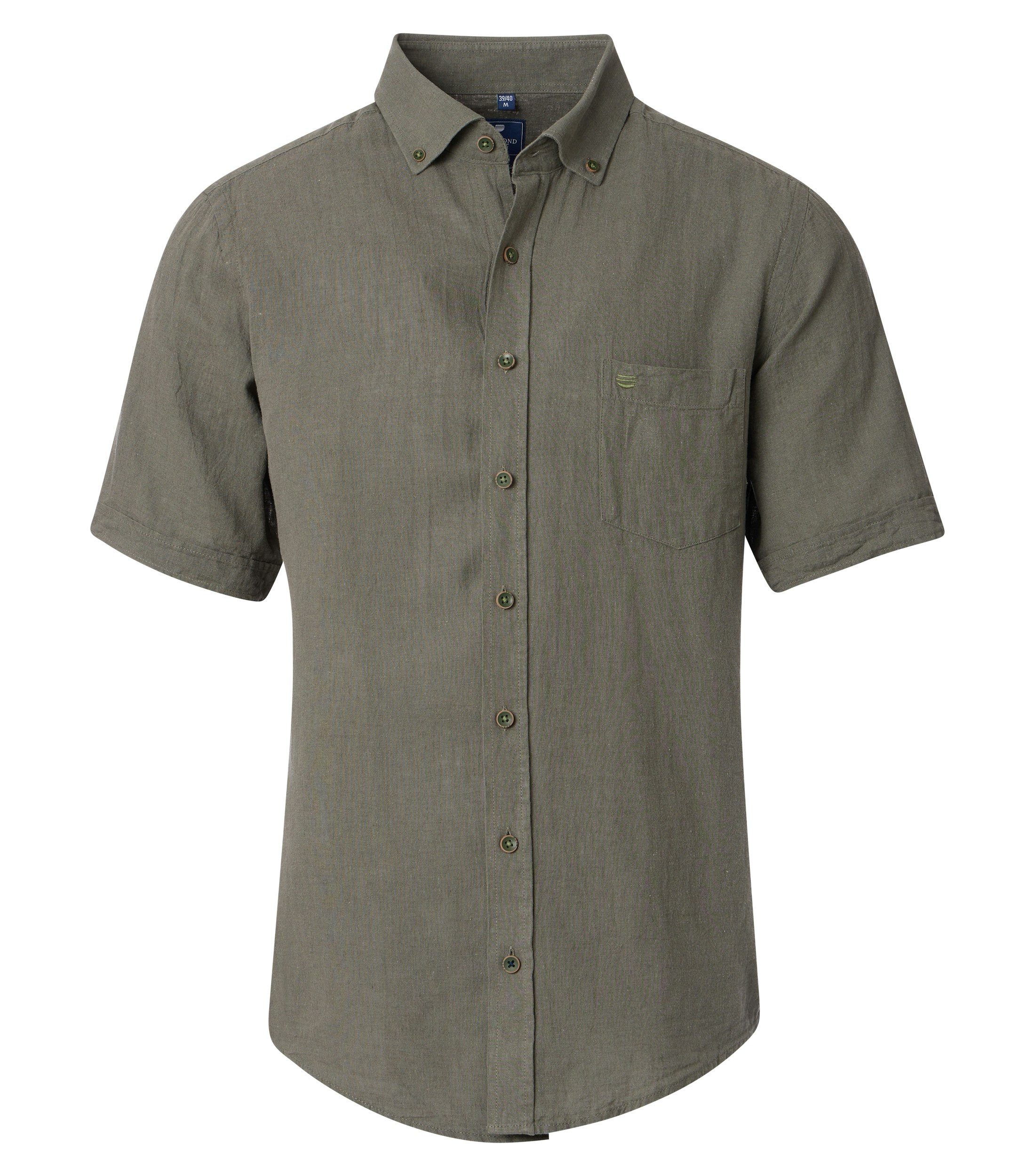 Redmond Herren Leinenhemd Casual Fit Button Down Kragen Kurzarm Einfarbig Olive